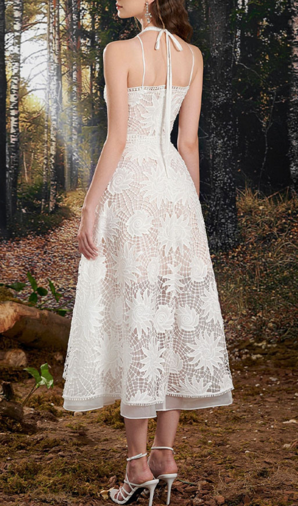 AOTEA HALTER EMBROIDERY MIDI DRESS