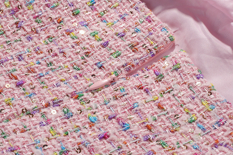 Unleash your inner fashionista with the AQUITAINE PINK TWEED DRESS. This stylish dress features a unique pink tweed design that will make you stand out from the crowd. Perfect for any occasion, this dress is sure to bring a playful and fun vibe to your wardrobe.
