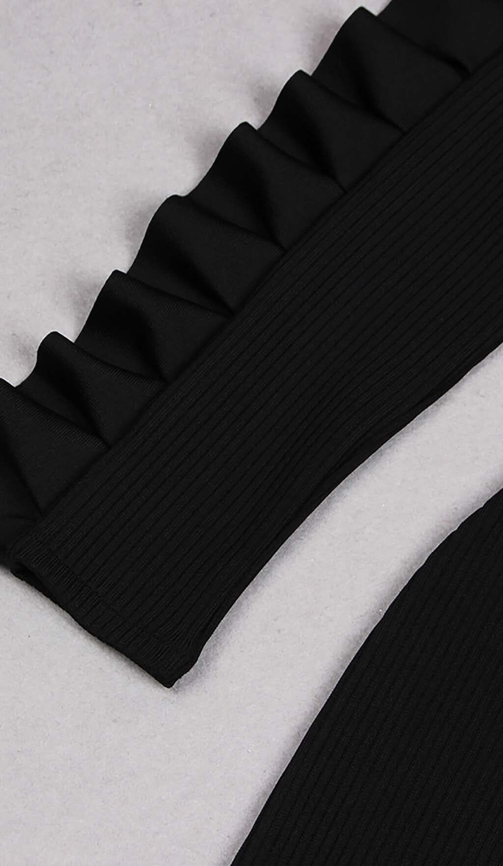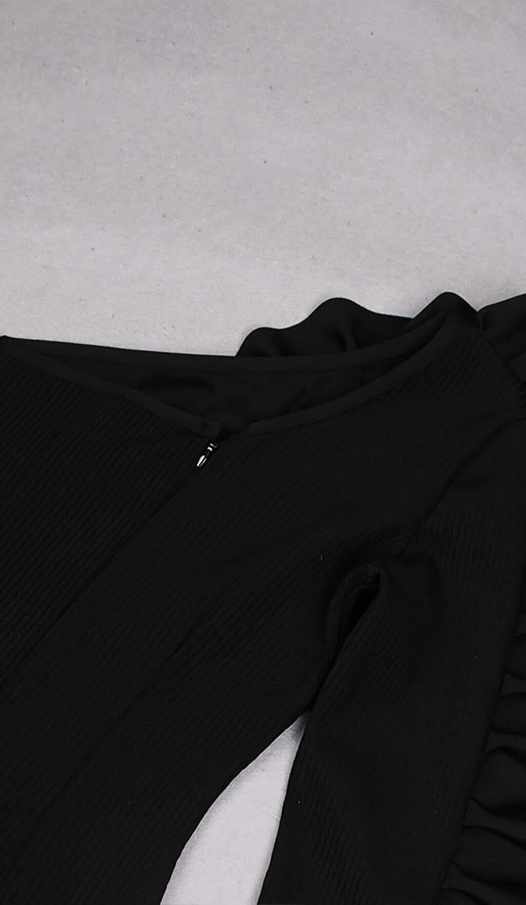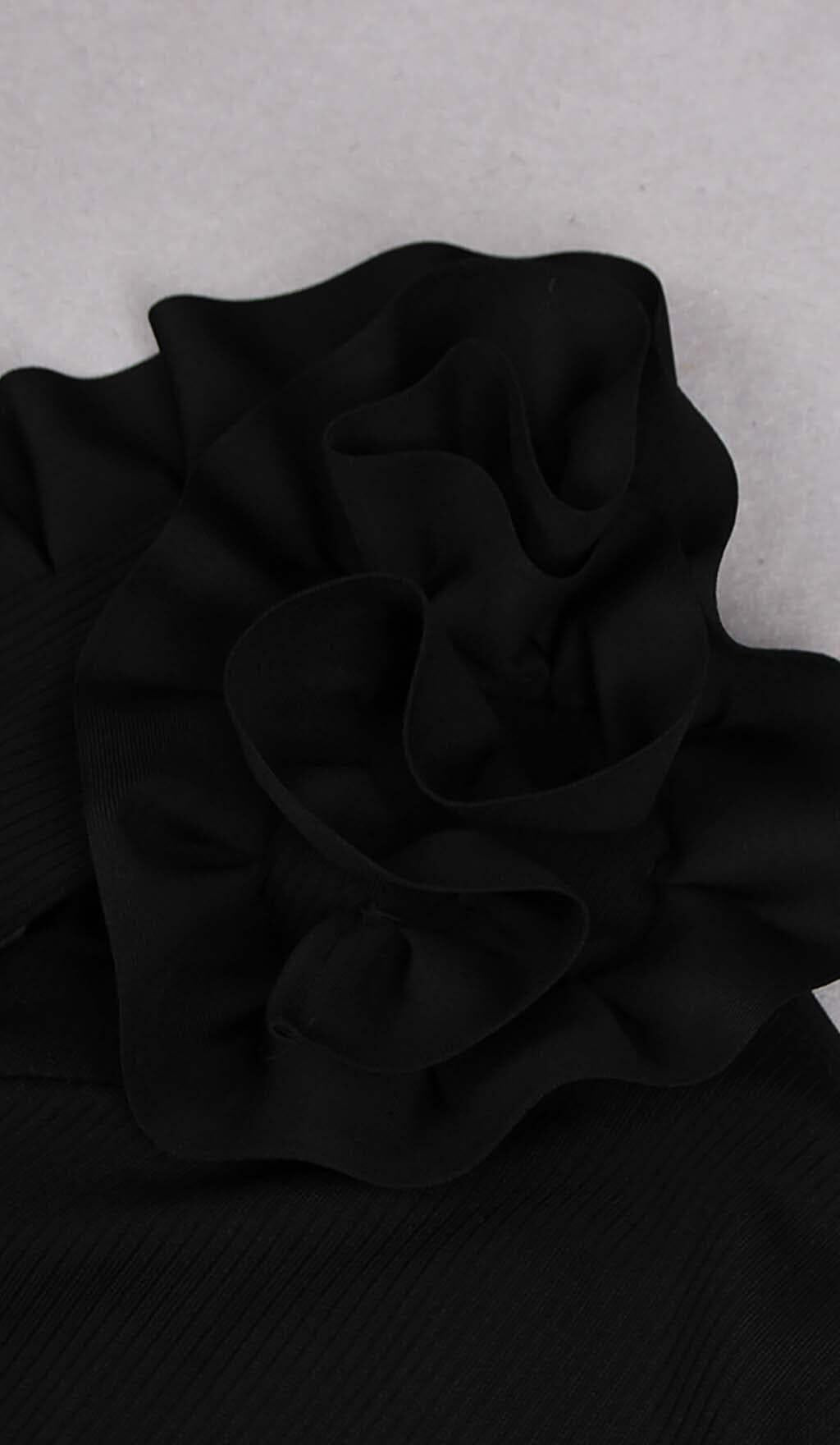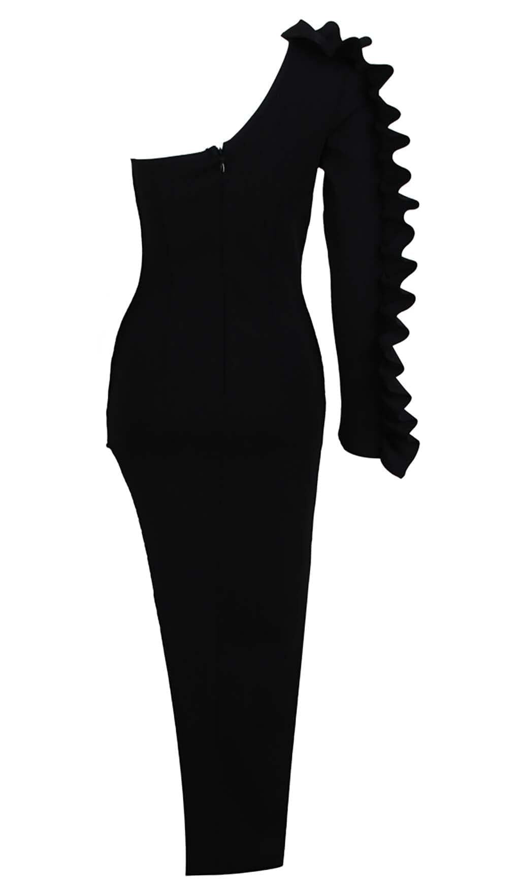 ASYMMETRIC ONE SLEEVE MIDI DRESS IN BLACK
