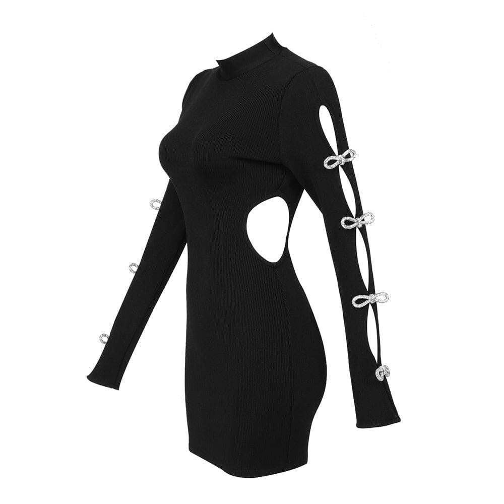 BACKLESS HIP WRAP MINI DRESS IN BLACK