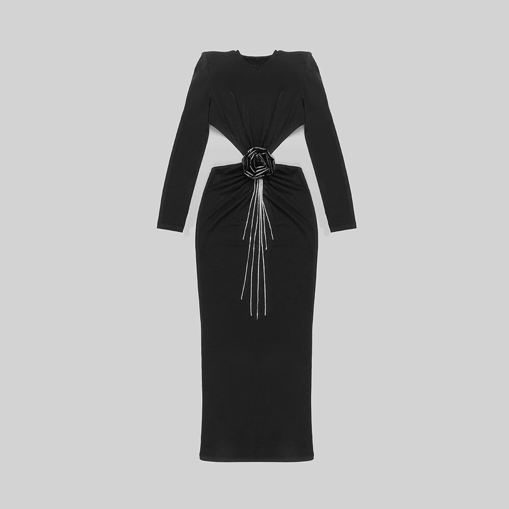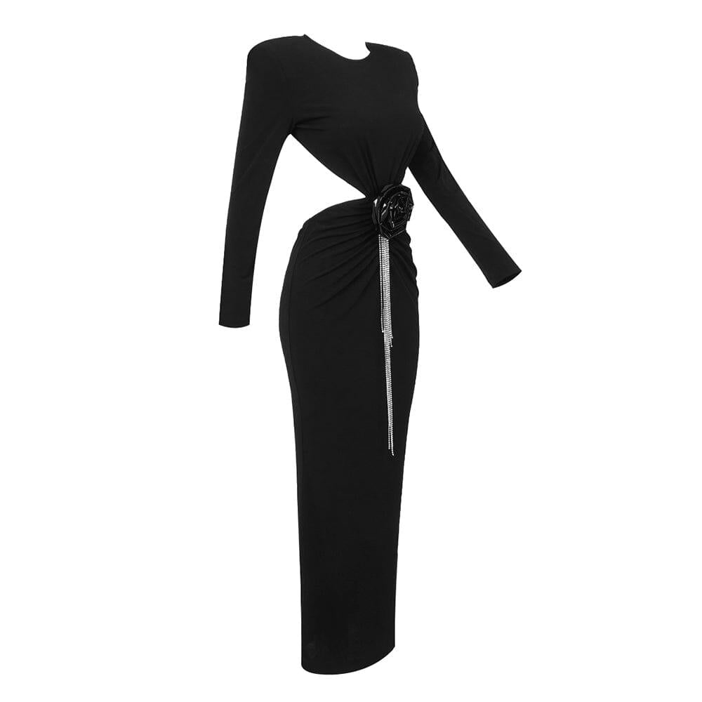 Elevate your style with our Backless Hip Wrap Mixi Dress in Black. Its daring design, flattering silhouette, and luxurious fabric make it the perfect choice for any special occasion. Order yours today and turn heads wherever you go.