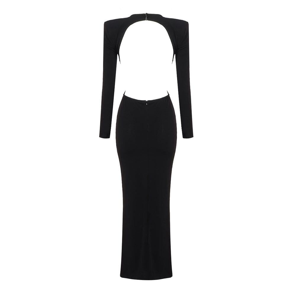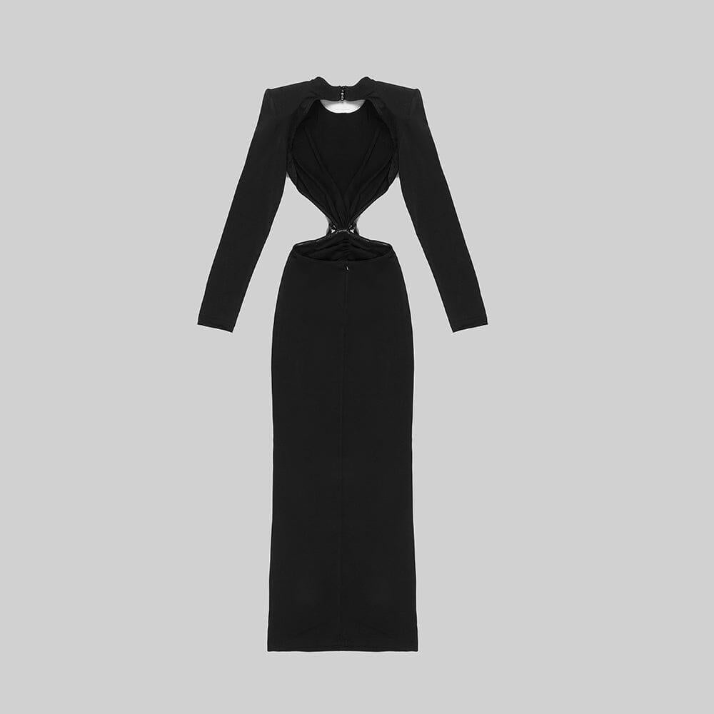 BACKLESS HIP WRAP MIXI DRESS IN BLACK