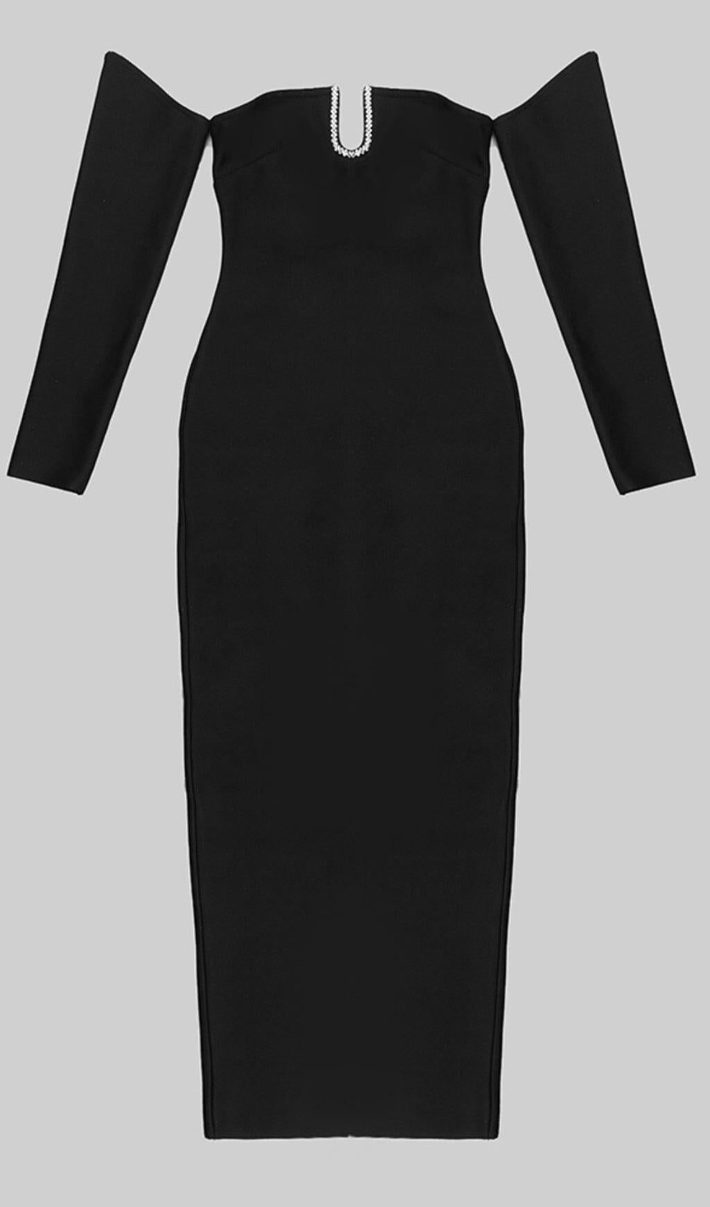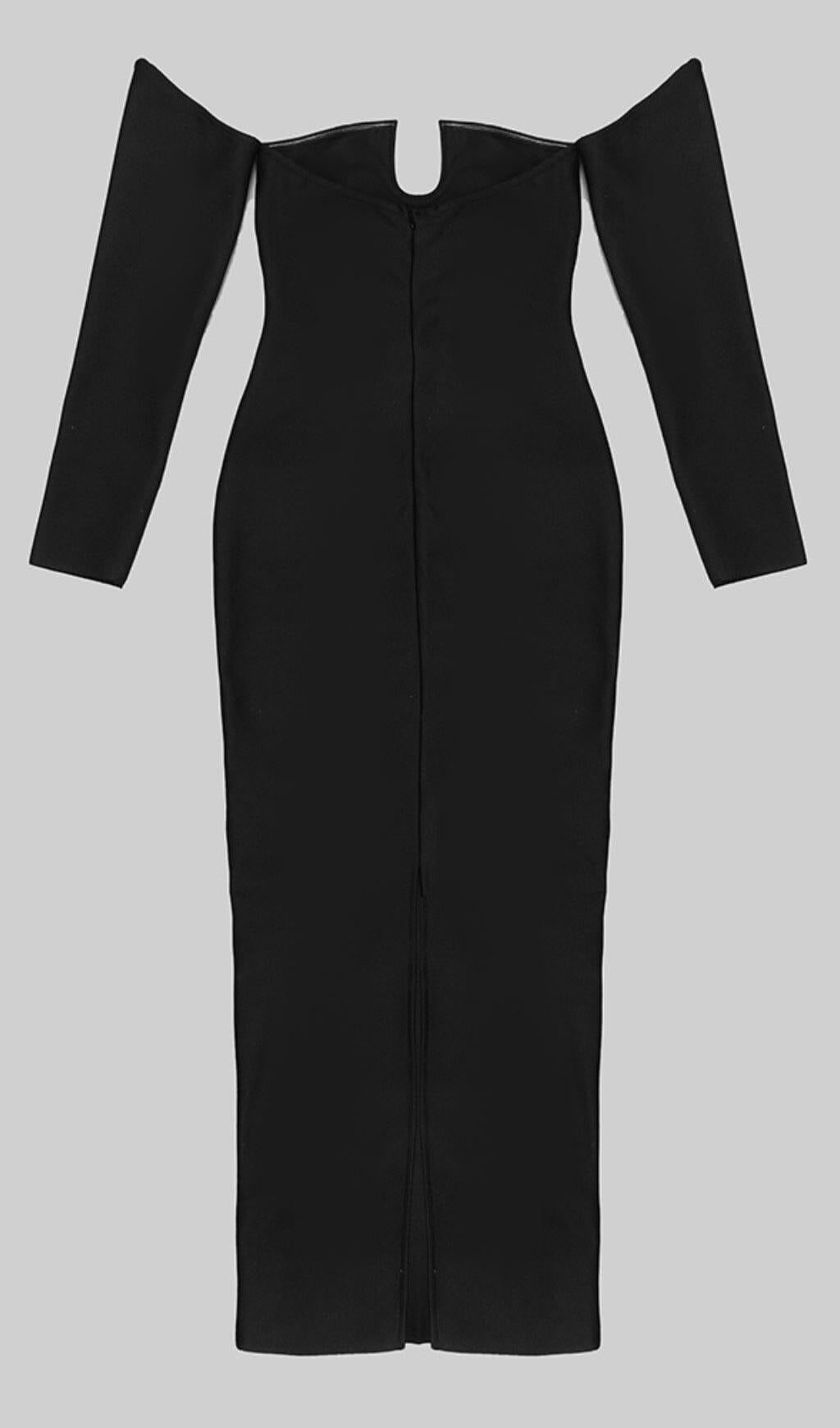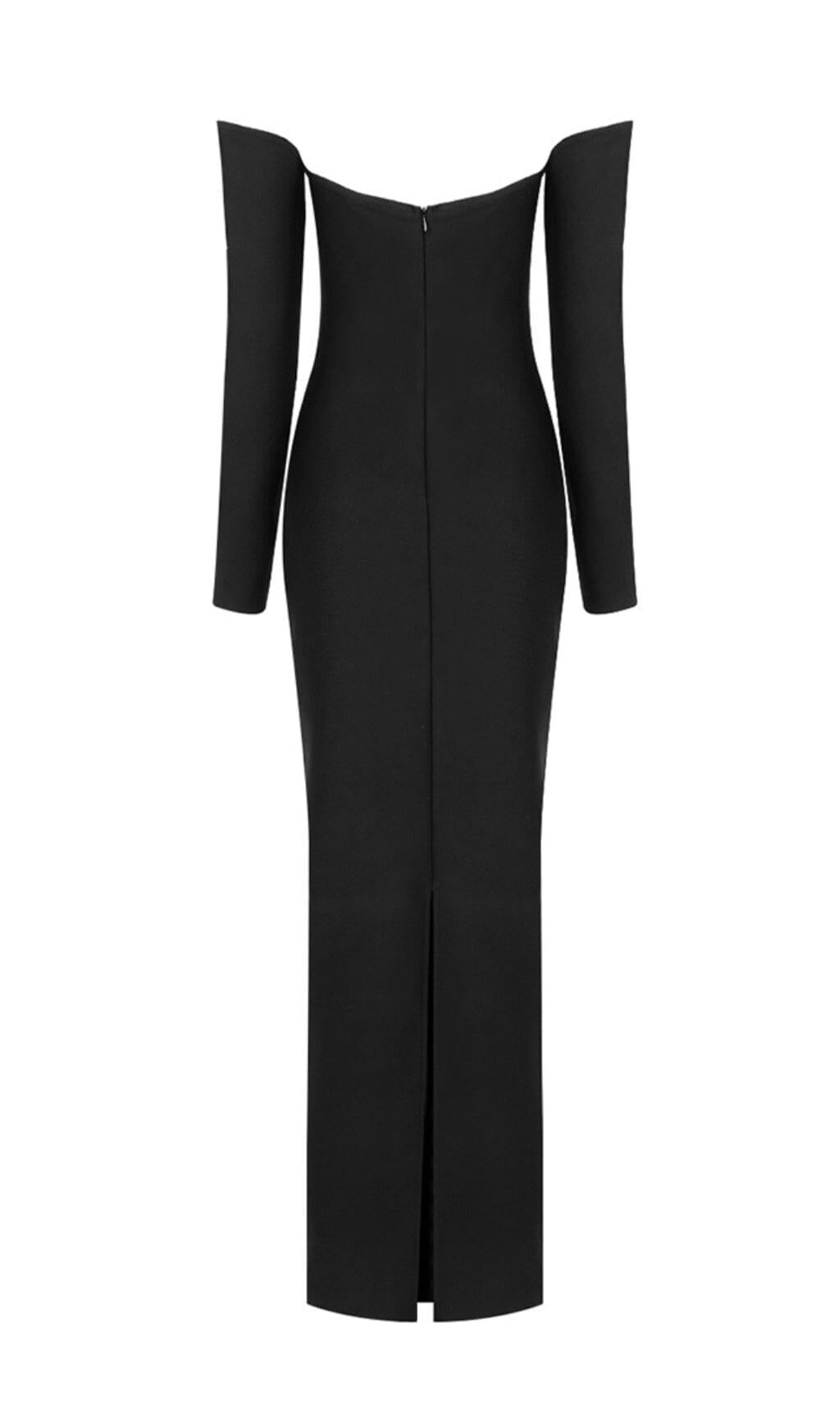 Introducing the SLIM-FIT CHEST HOLLOW OFF-THE-SHOULDER MAXI DRESS IN BLACK