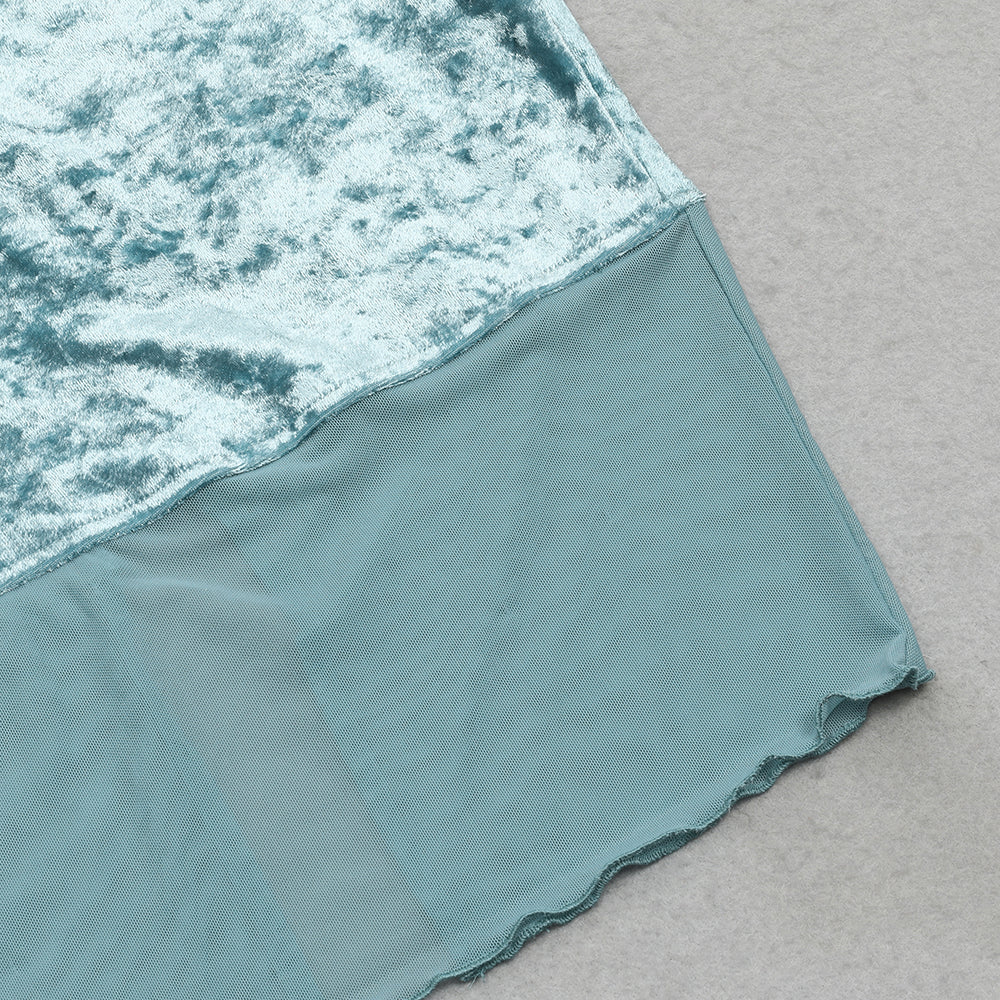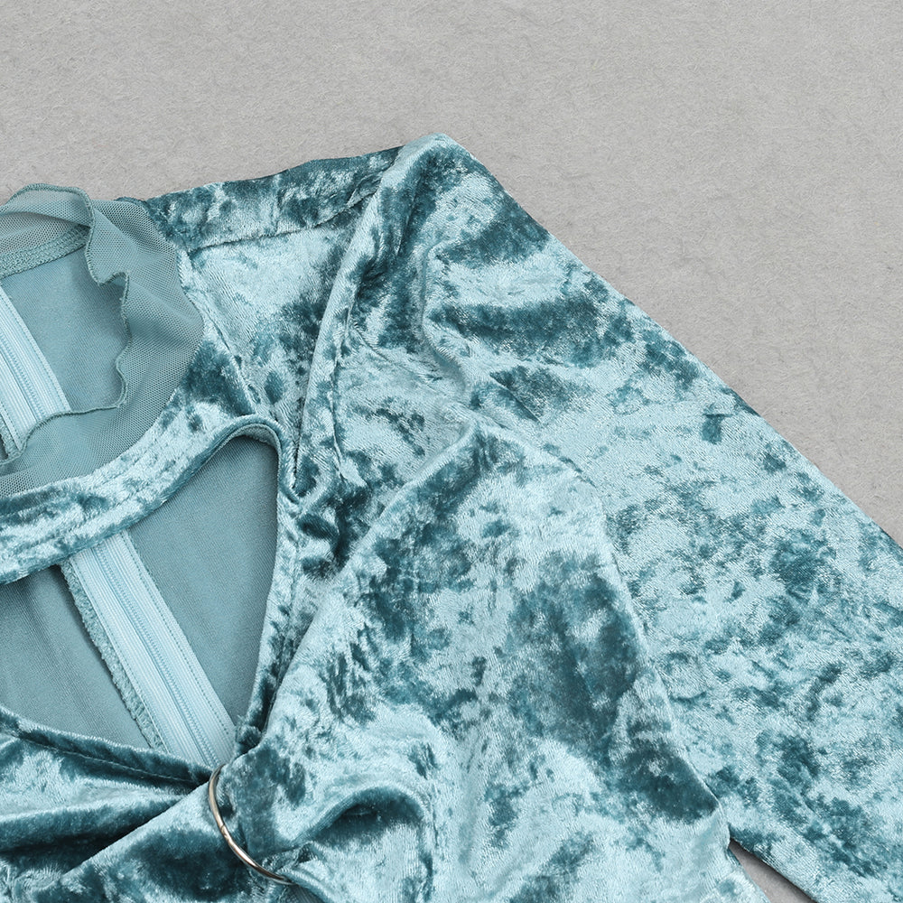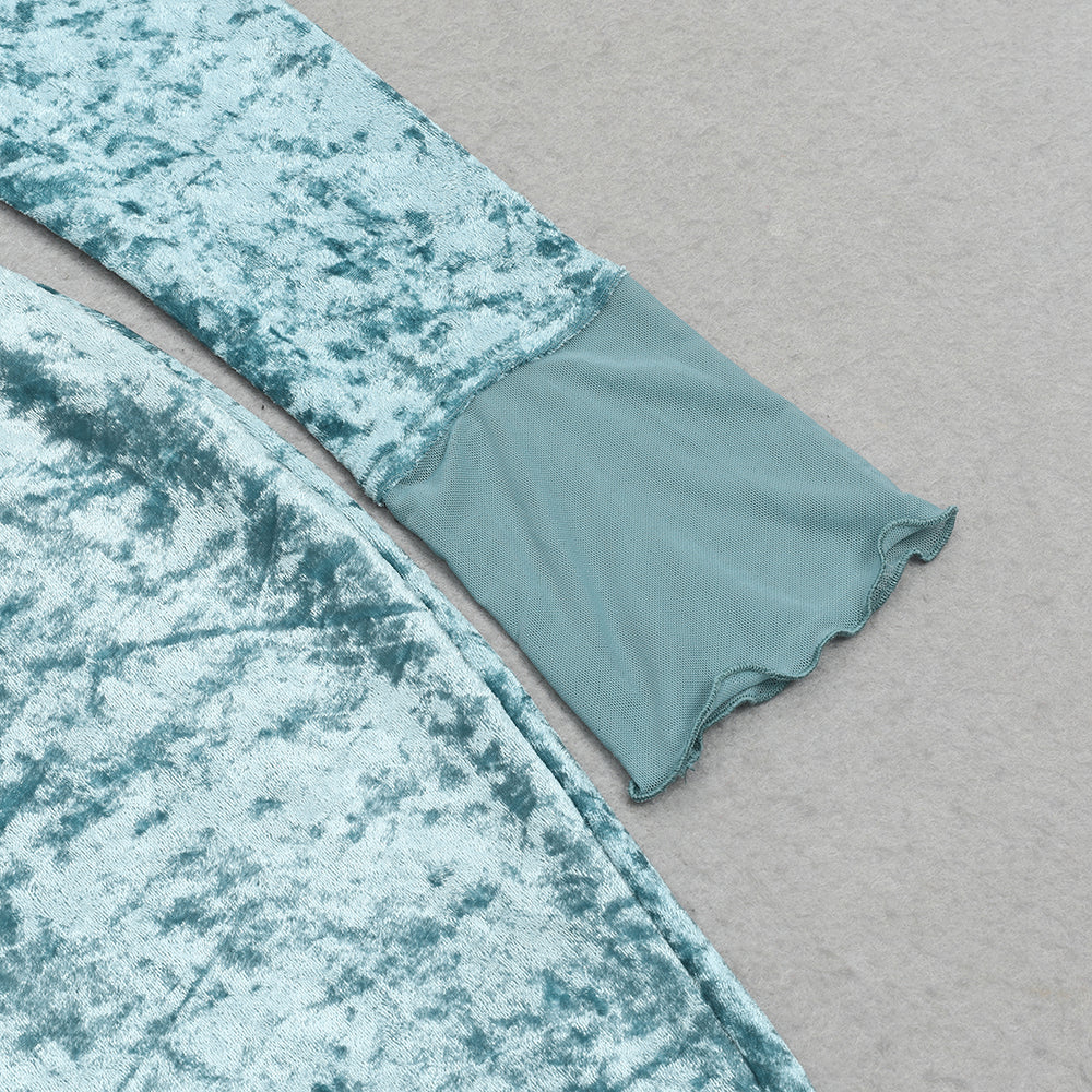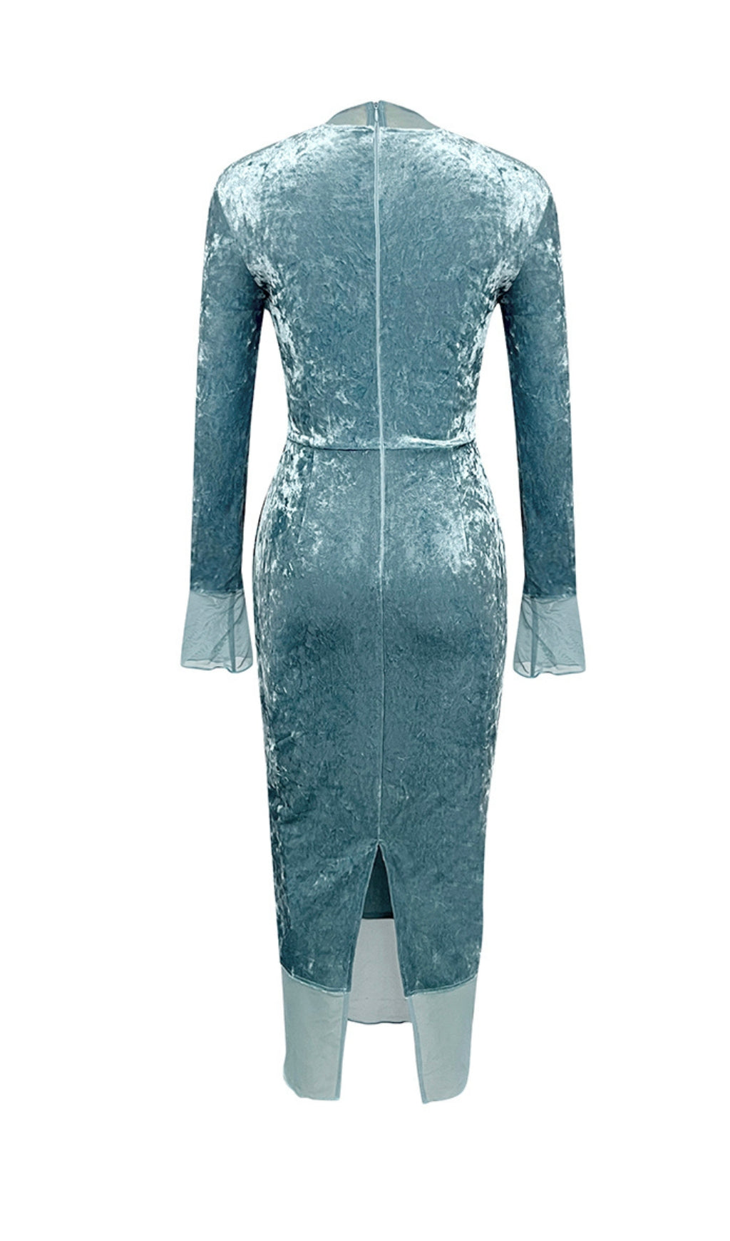 AALIYAH BLUE HOLLOW VELVET MIDI DRESS