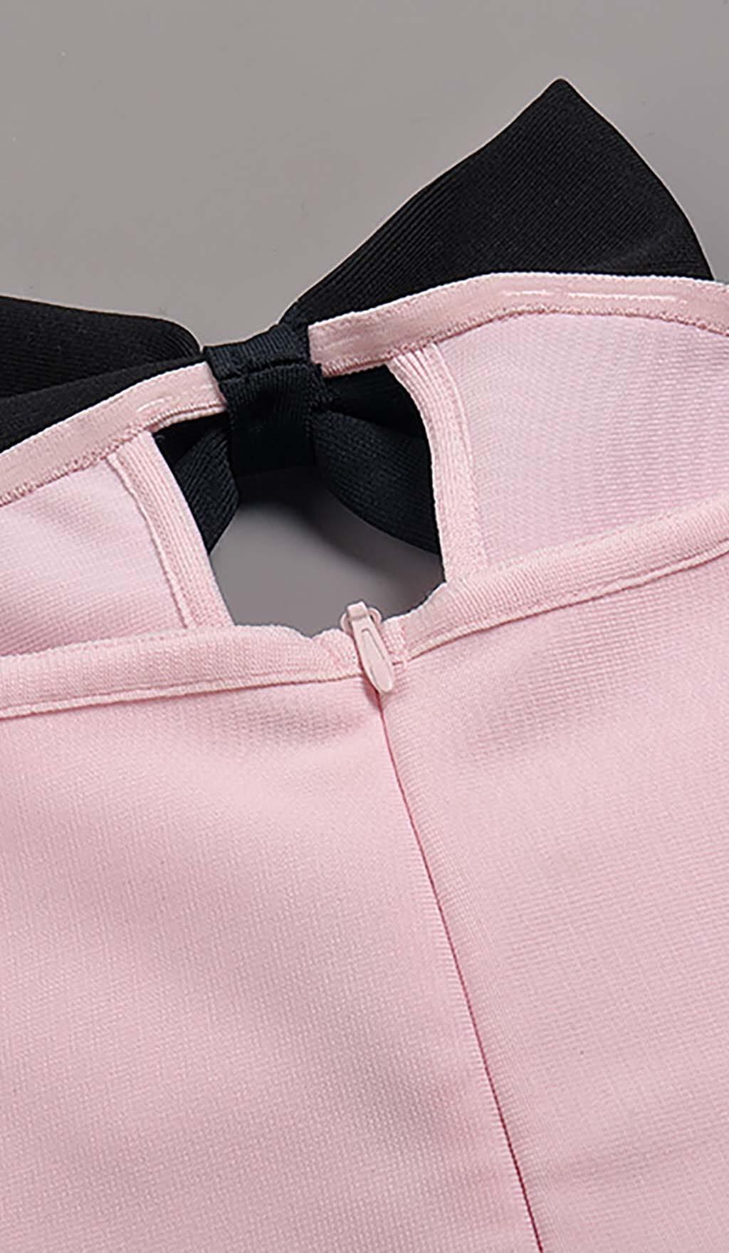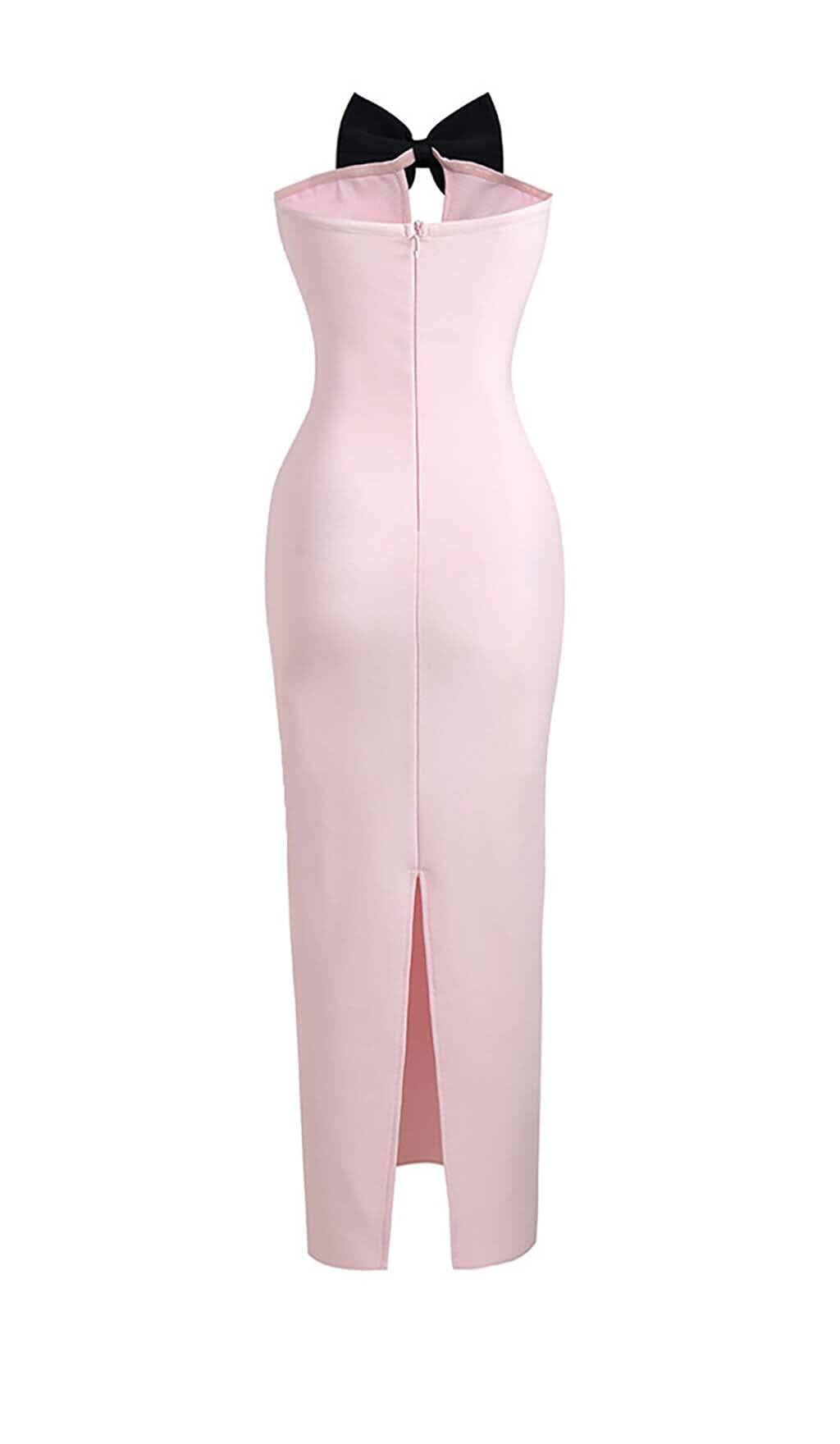 BOW-EMBELLISHED SATIN MIDI DRESS IN PINK