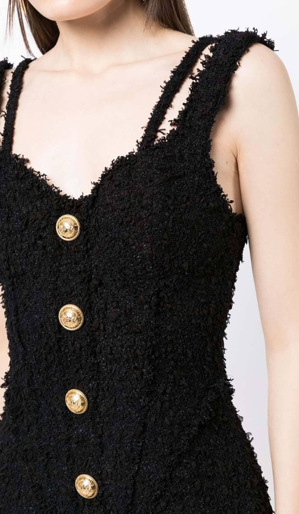 BUTTONED STRAP MINI DRESS IN BLACK