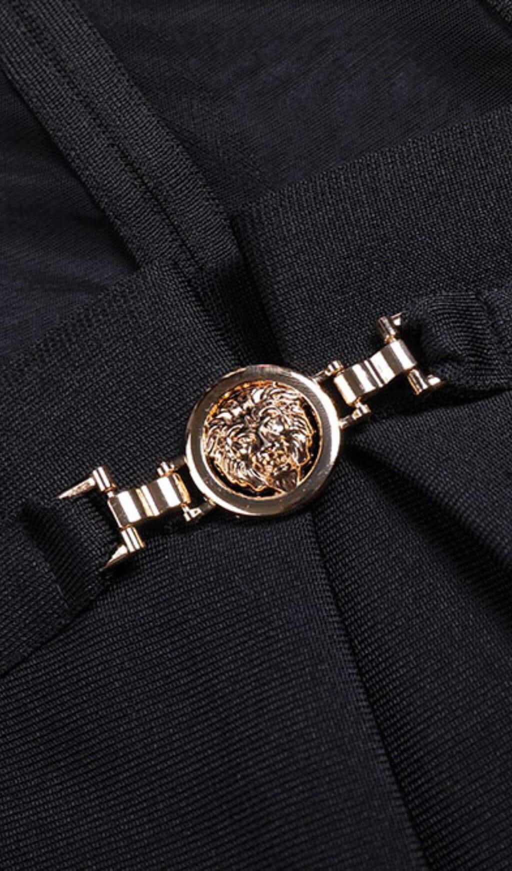 What sets this dress apart is the alluring cutouts at the waist, which reveal a hint of skin in a tasteful manner. It's a subtle yet seductive detail that adds an extra element of intrigue.