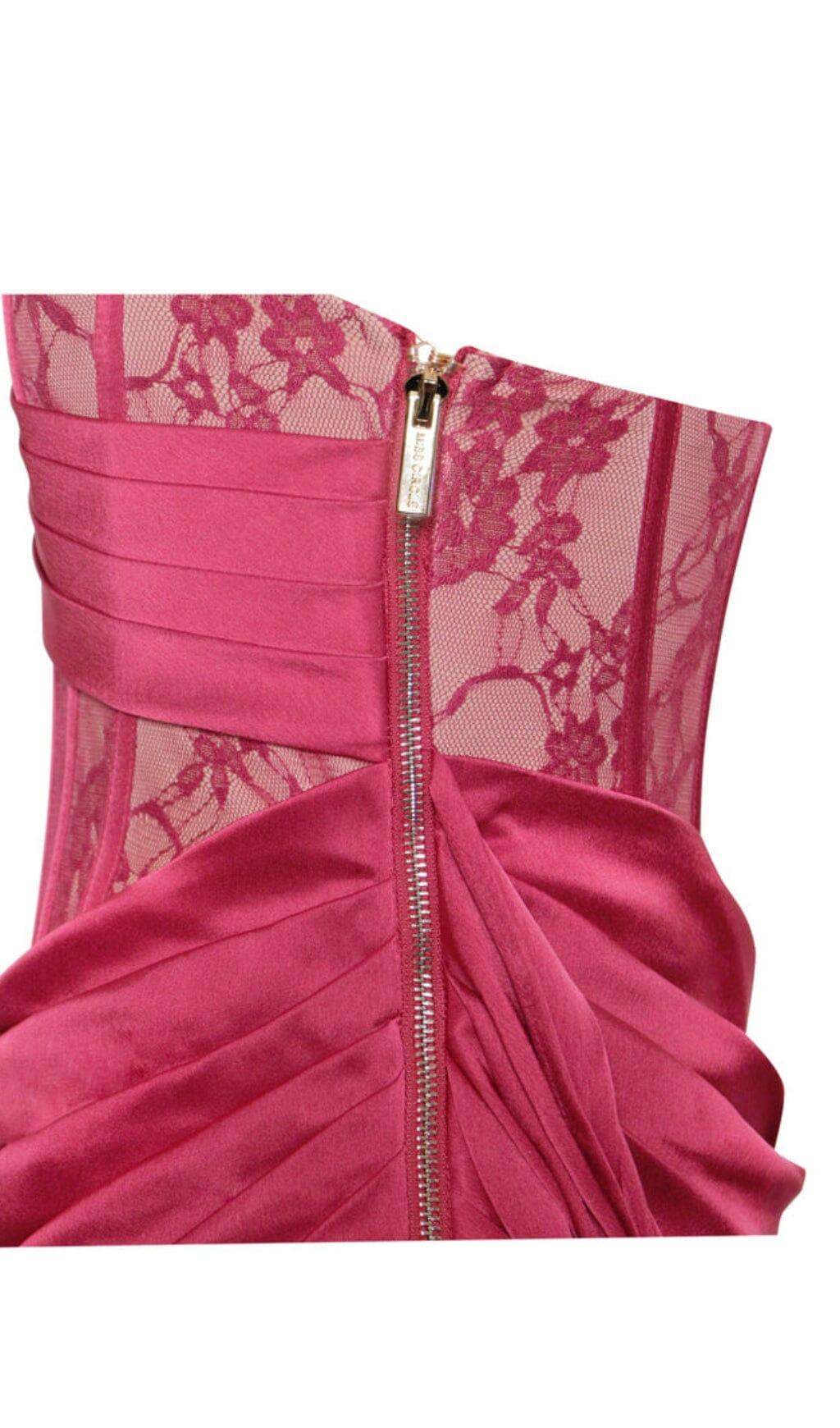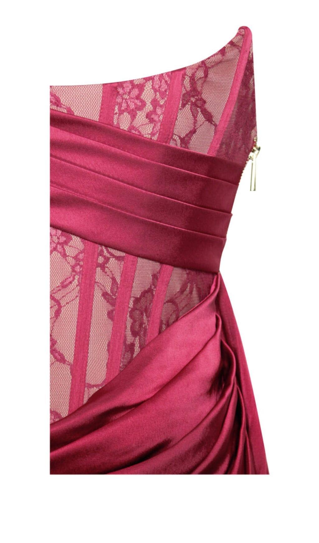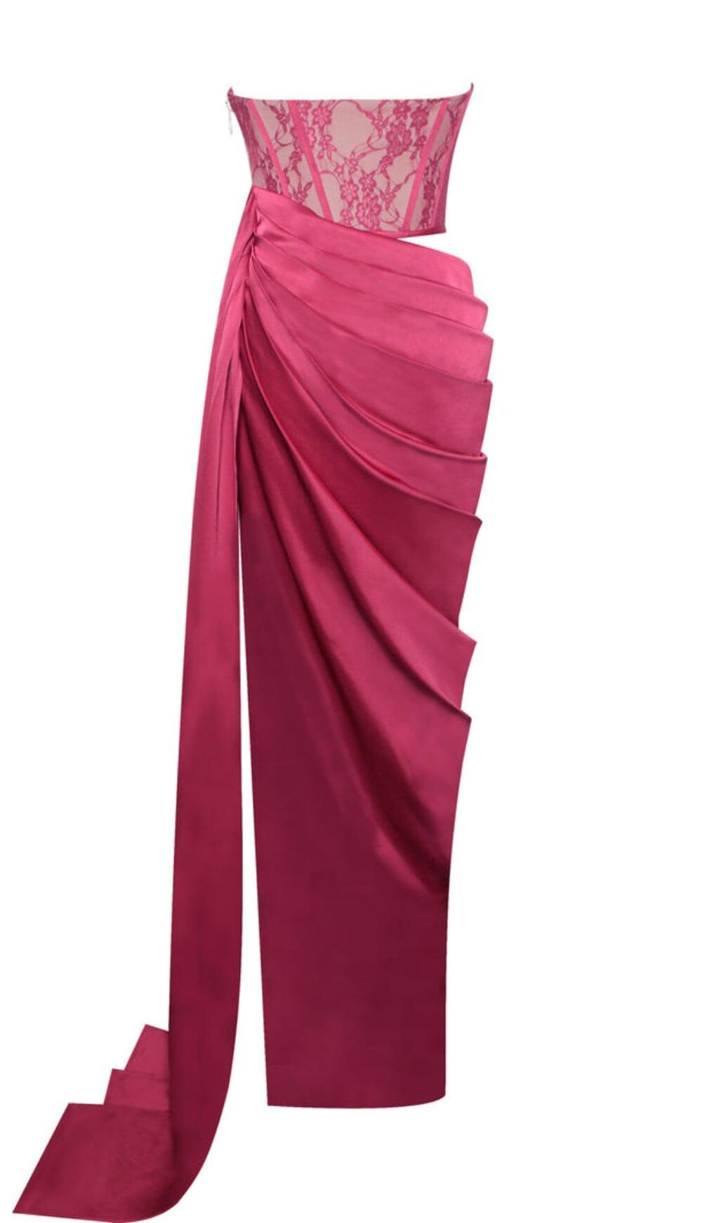 CORSET SATIN PLEATED MAXI DRESS IN RED