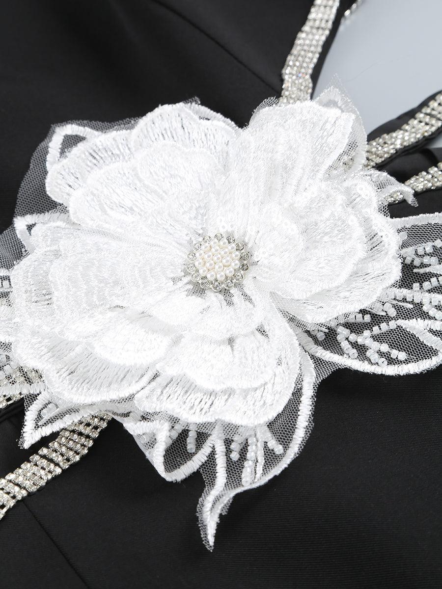 Adorned with intricate crystal floral embellishments, this mini dress exudes sophistication and luxury. Perfect for any special occasion, it is sure to make you stand out in a crowd. Elevate your style and be the center of attention with this exclusive piece.