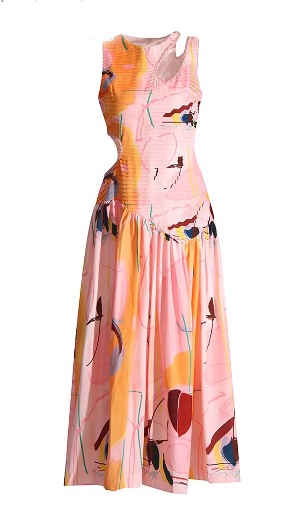 CUT OUTS ROUND NECK MAXI DRESS IN MULTICOLOR