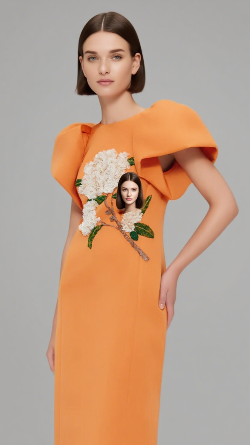 EDWINA EMBELLISHED MAXI DRESS HYDRANGEA PRINT IN TANGERINE