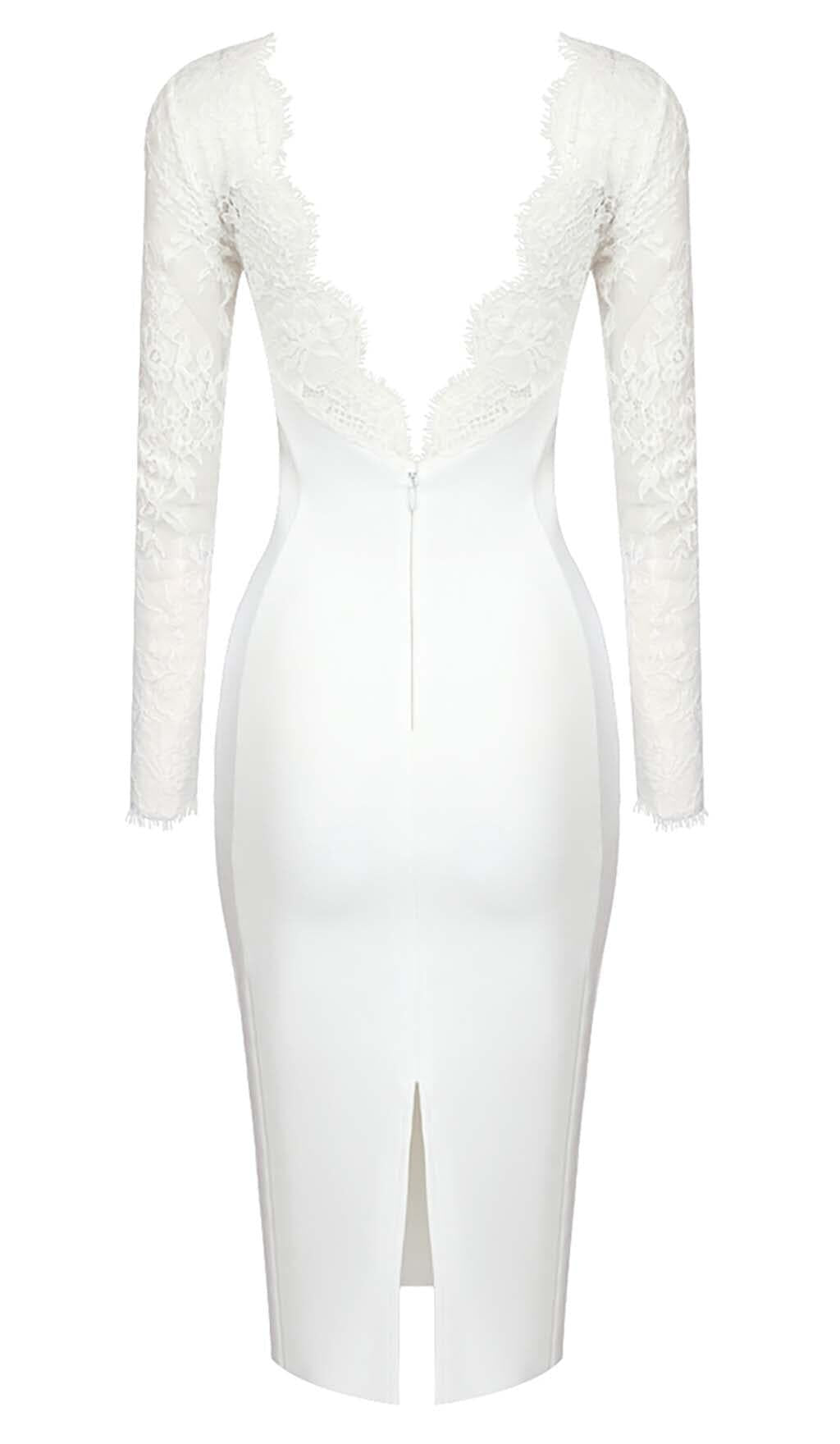 Key features of our Embroidered Lace Midi Dress in White: