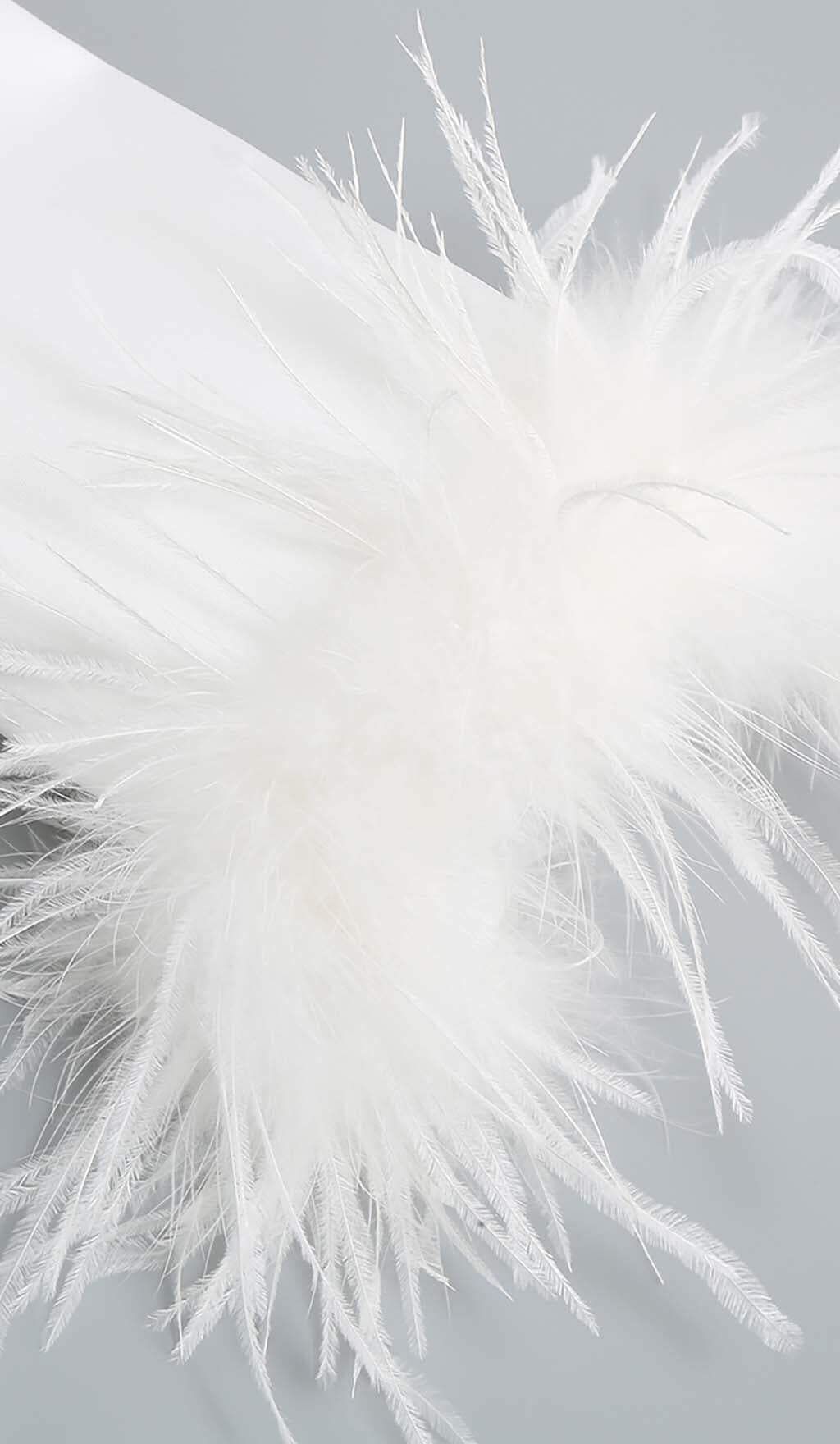 • The white color is perfect for any season, and the feathers give the outfit a unique and stylish touch.