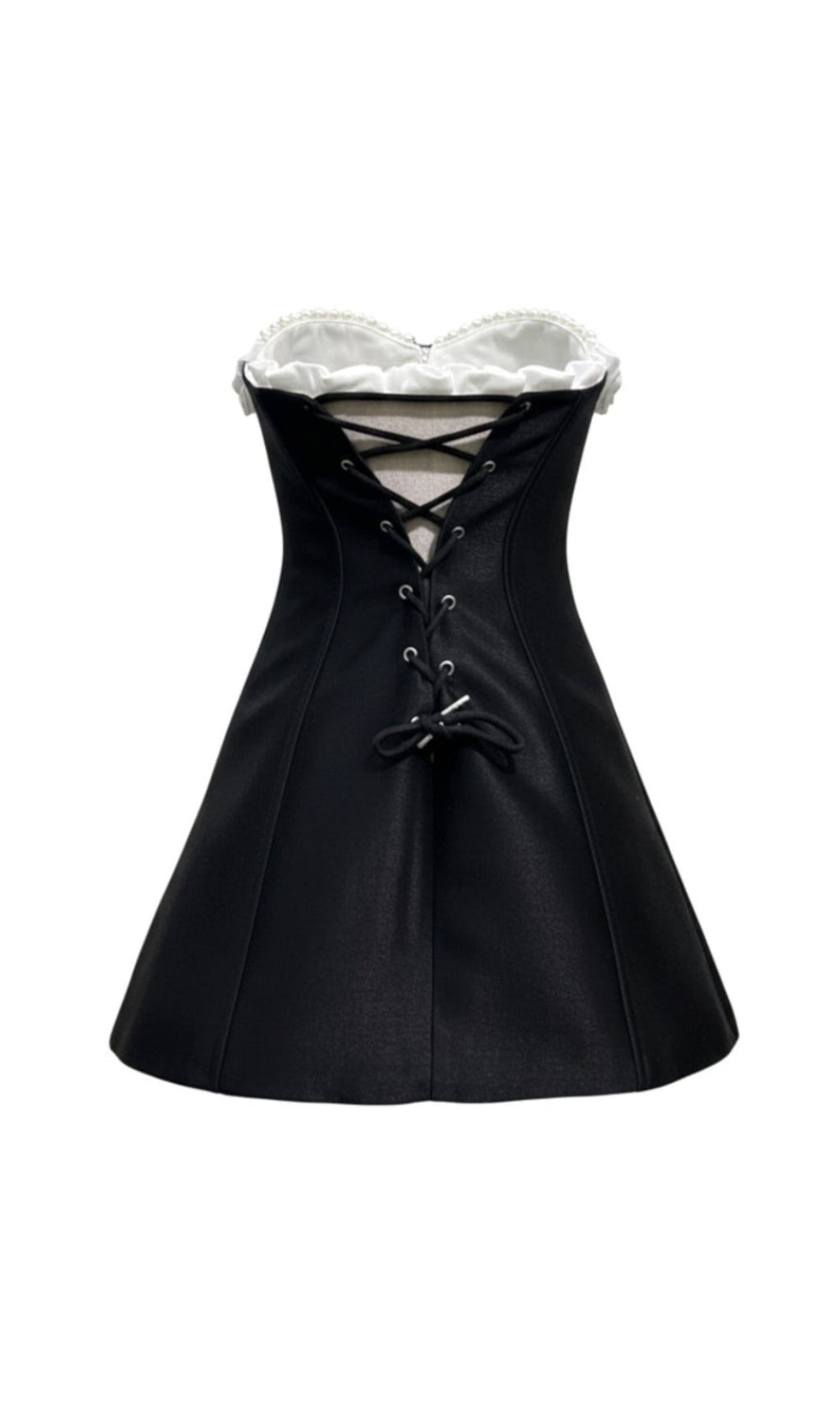 GLADYS STRAPLESS 3D FLORAL CORSET A-LINE DRESS IN BLACK