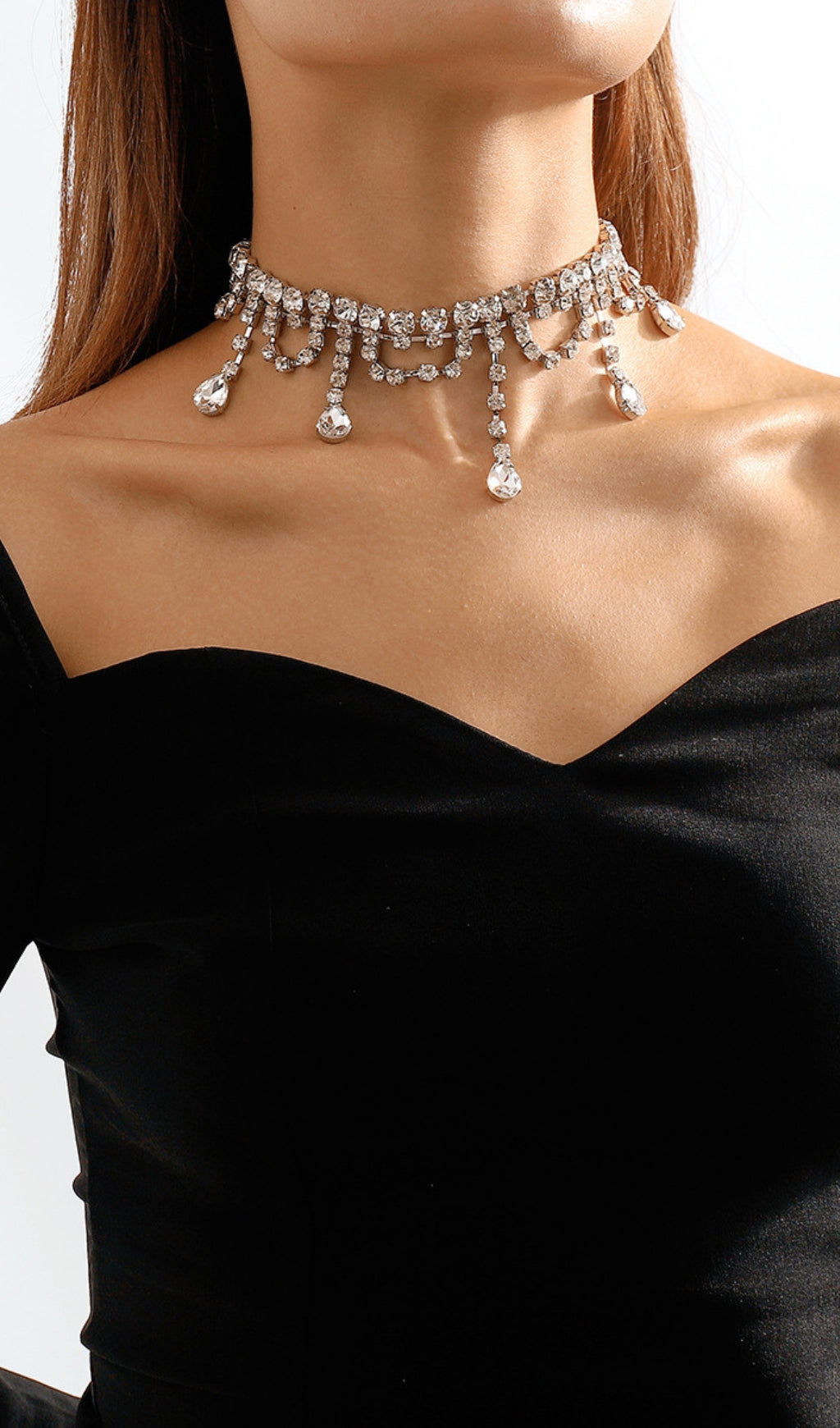 SILVER RHINESTONE TASSEL CLAW CHAIN