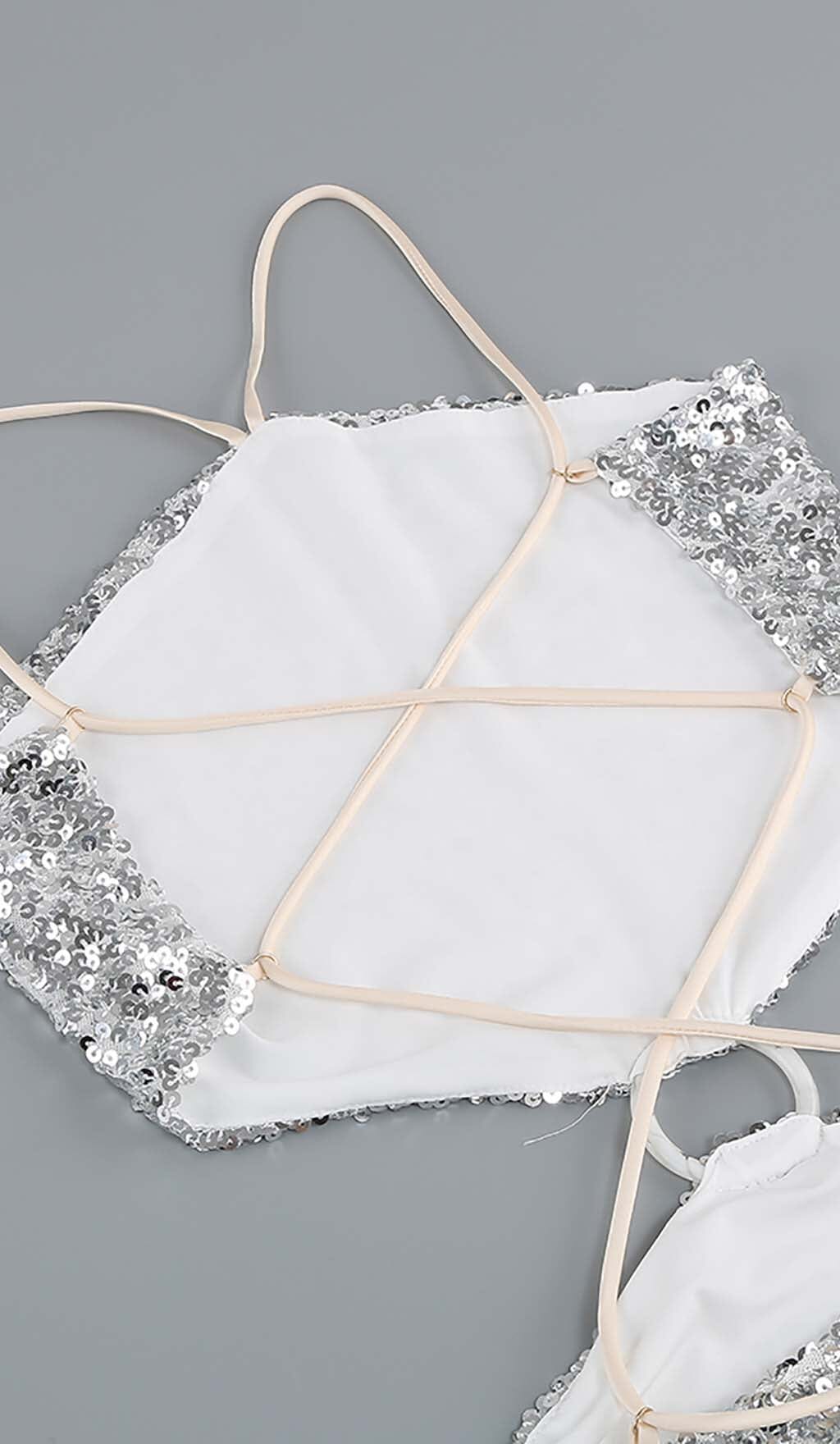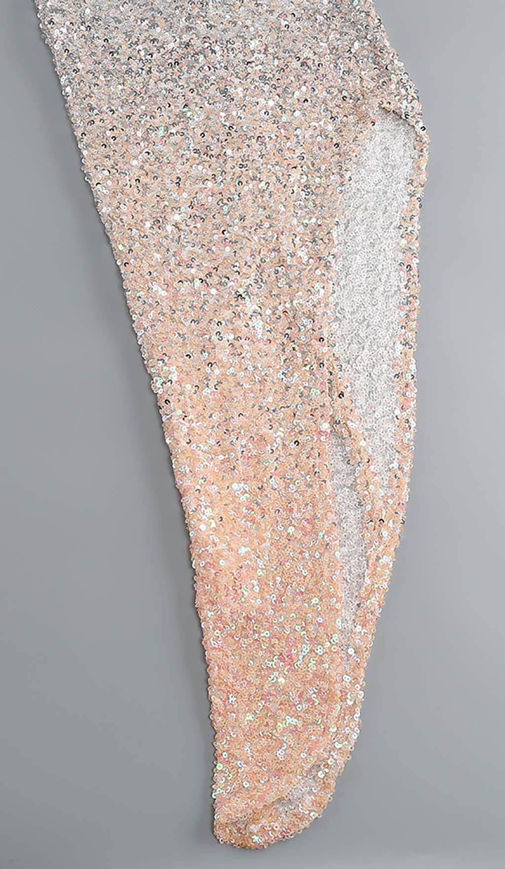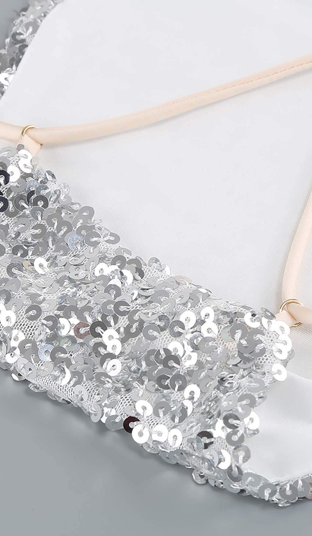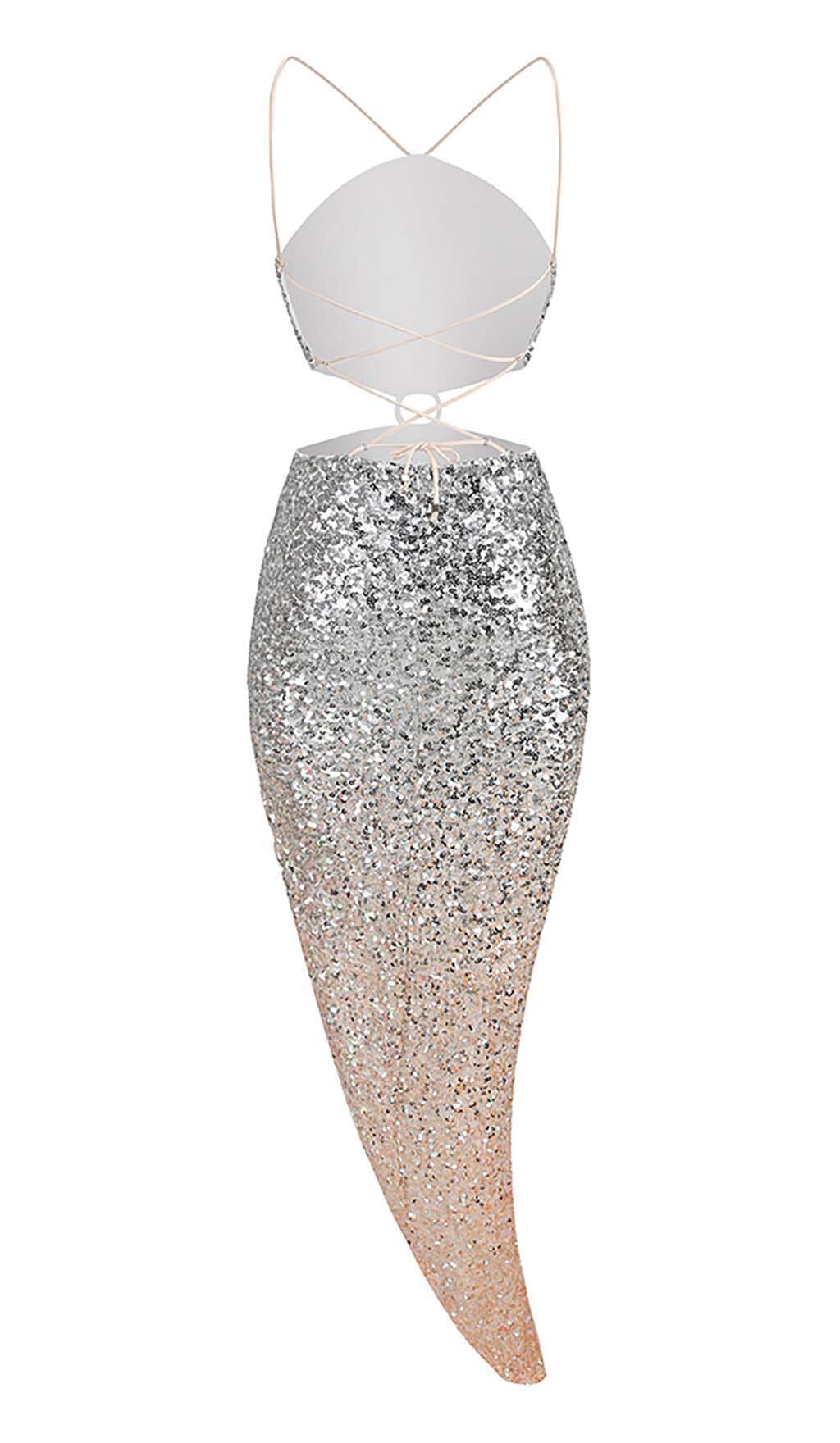 HALTER SEQUIN MAXI DRESS IN METALLIC SLIVER