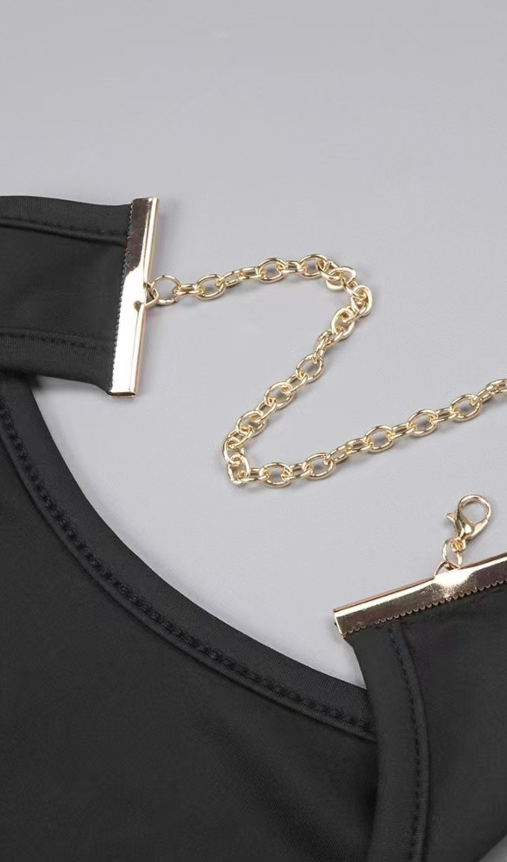• Distinctive Detail: A subtle, luxurious gold-tone chain detail at the halter neck elevates the piece, adding a jewelry-like finish and ensuring the dress looks polished from every angle.