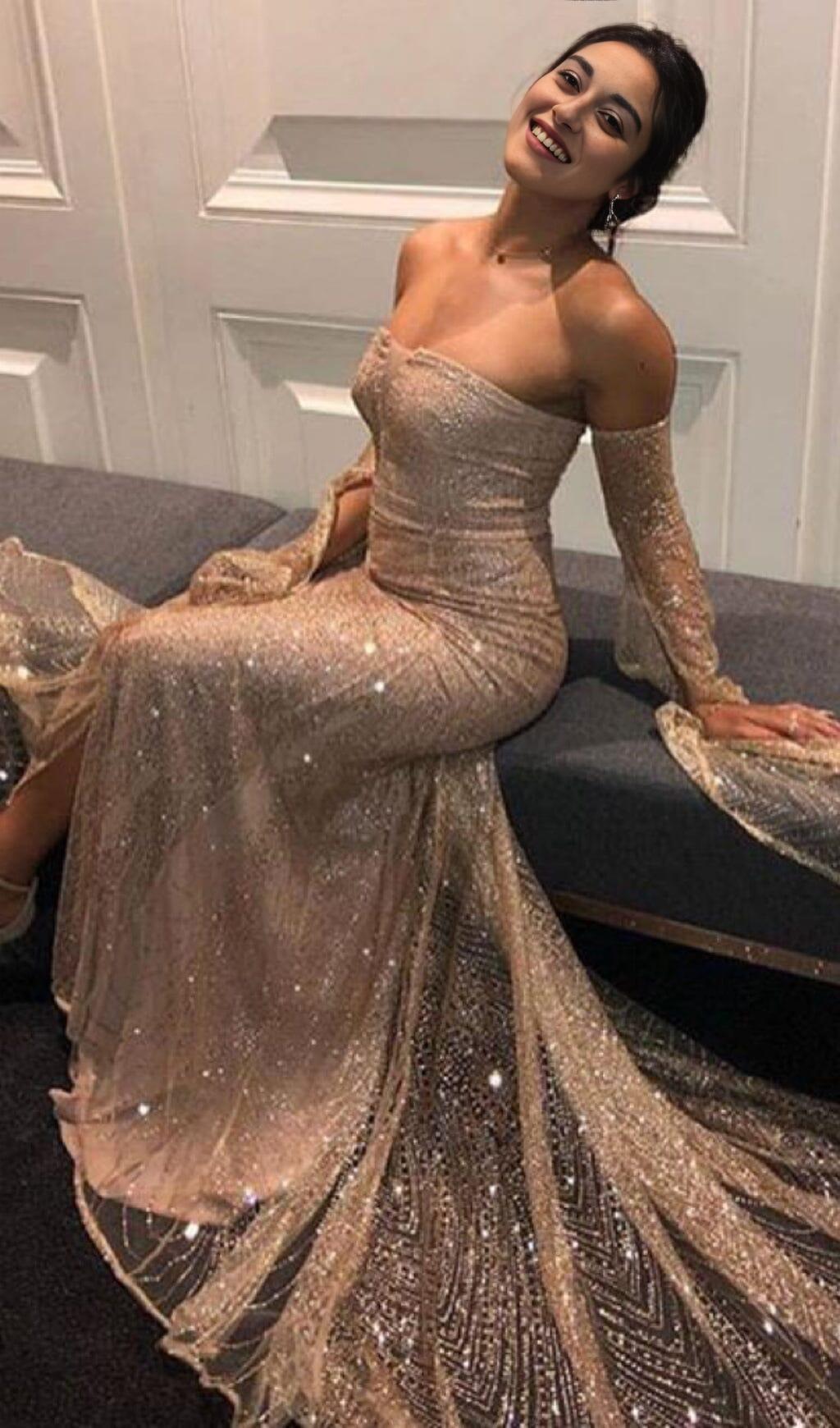 The high slit and long vertical sleeves of this skirt add an elegant and noble touch to your overall appearance. The champagne color of the dress combined with the inlaid rhinestones makes you dazzle and shine, ensuring all eyes are on you.
