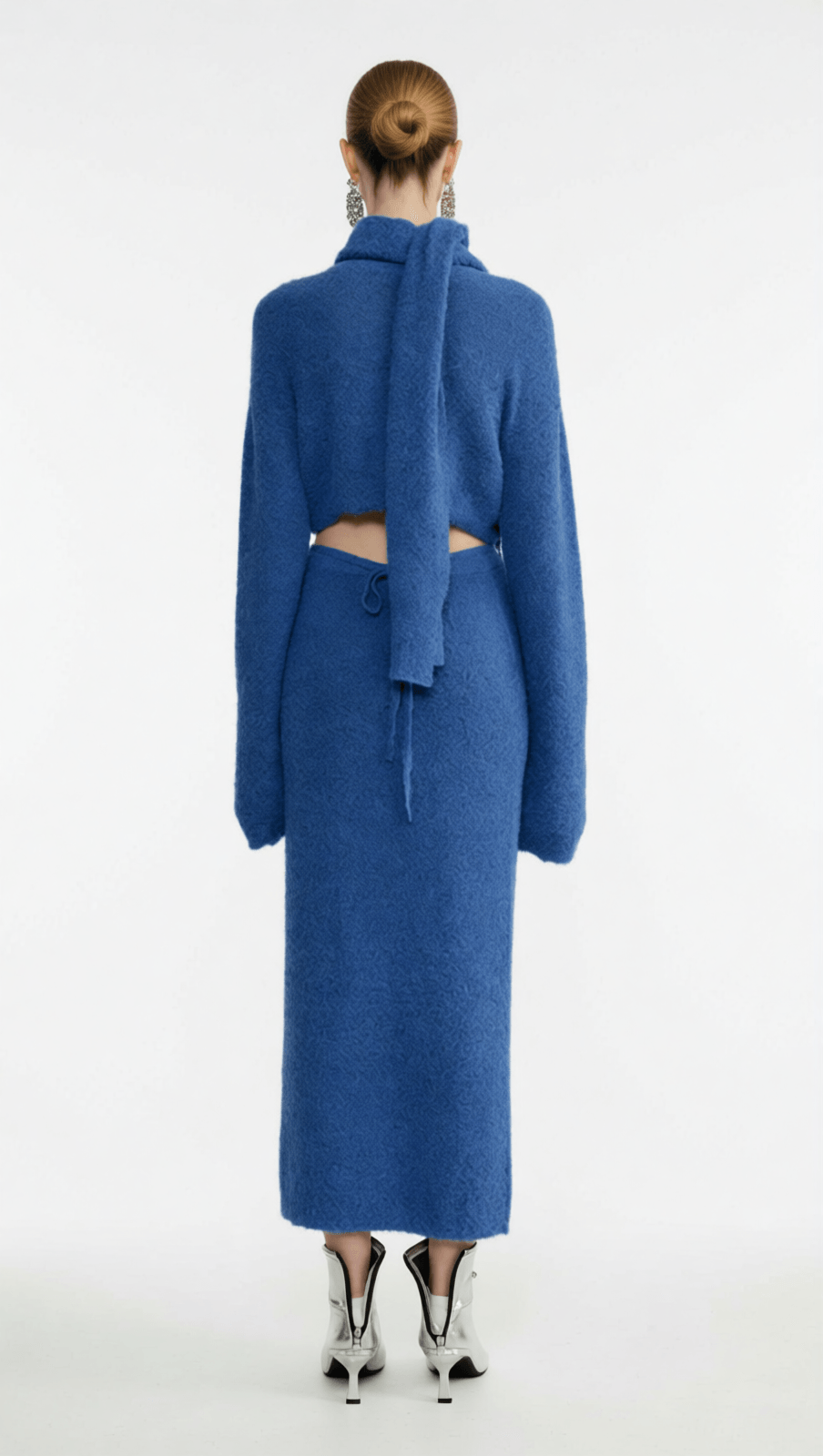 • Versatile Scarf: A coordinating knit scarf that can be styled around the neck for added warmth and elegance, or draped for a dramatic, runway-inspired effect.