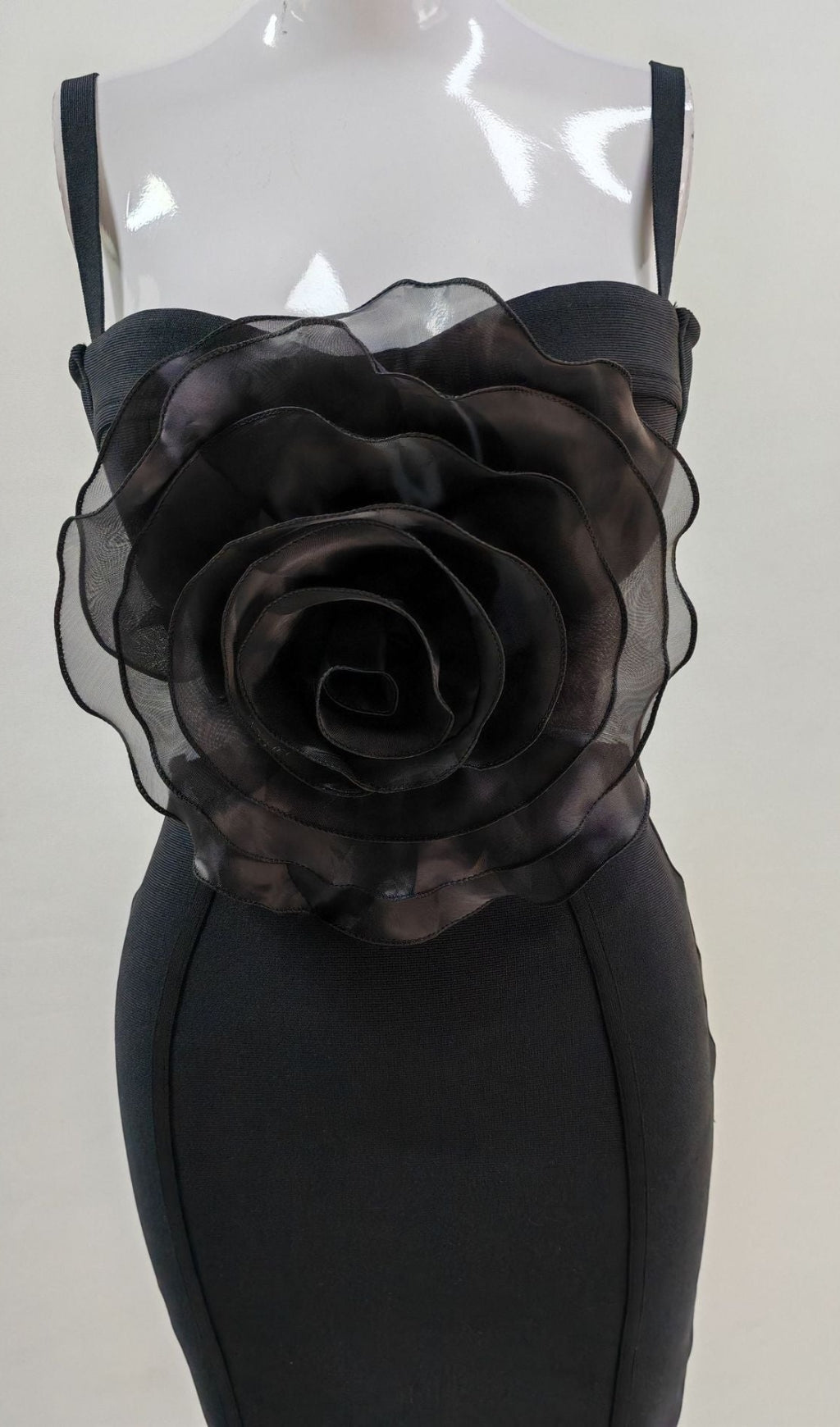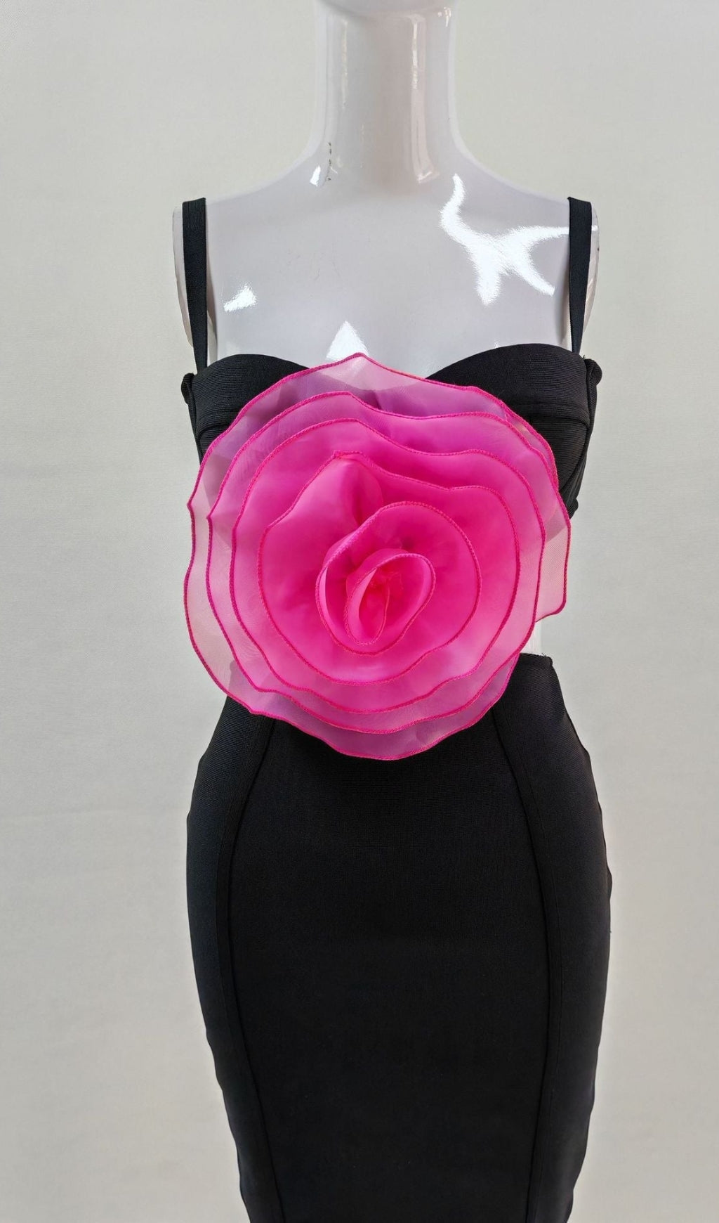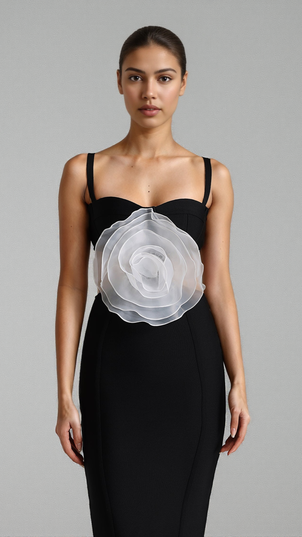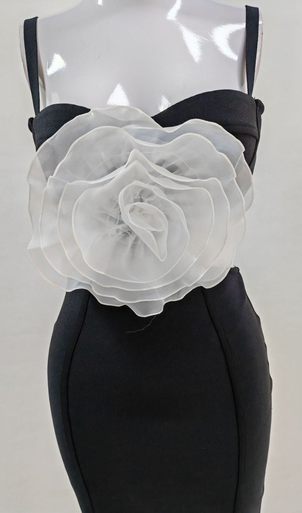 JACEY MESH FLOWER BANDAGE MIDI DRESS