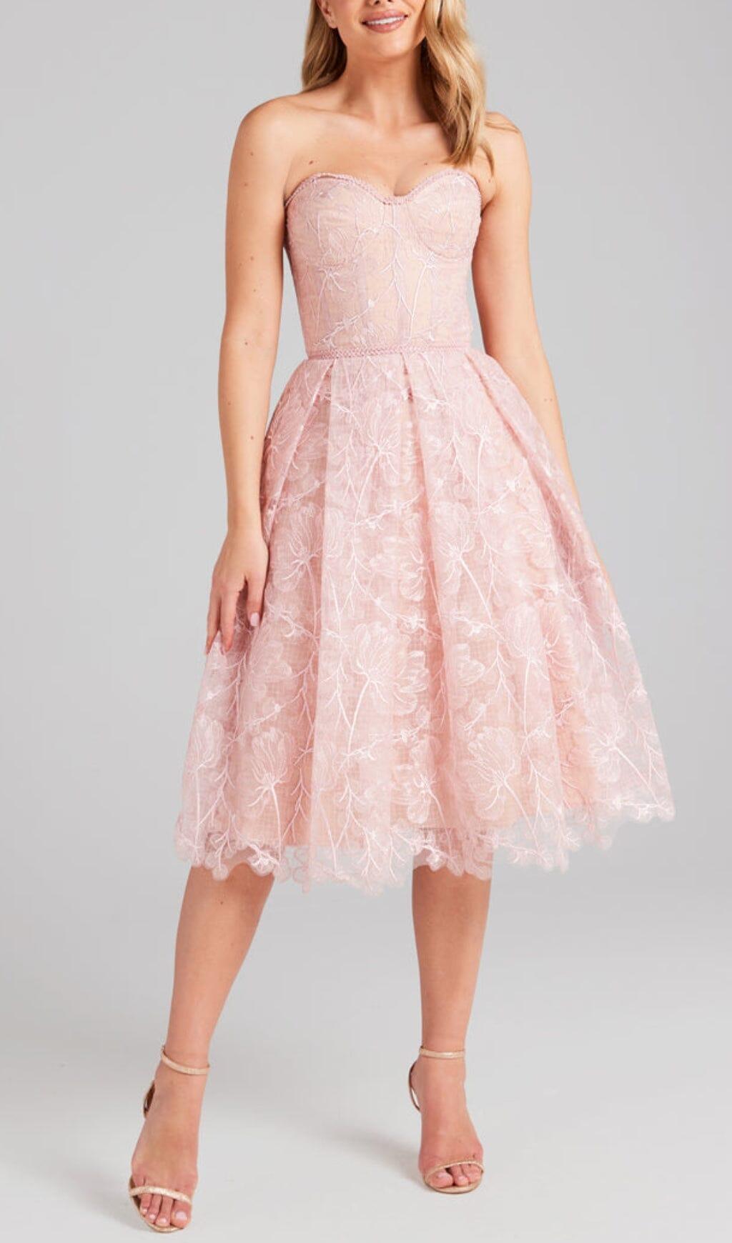 LACE BANDEAU MIDI DRESS IN PINK