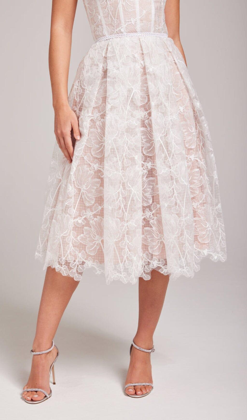 LACE BANDEAU MIDI DRESS IN WHITE