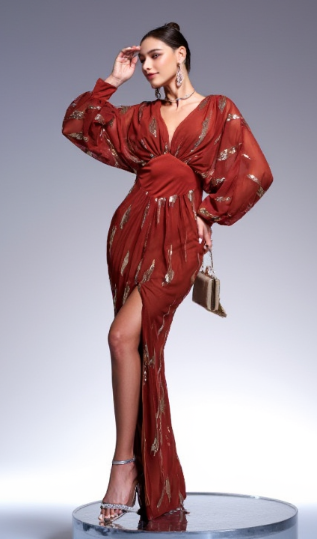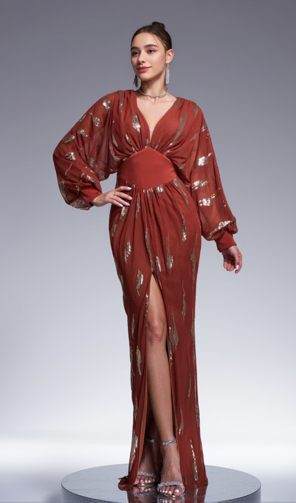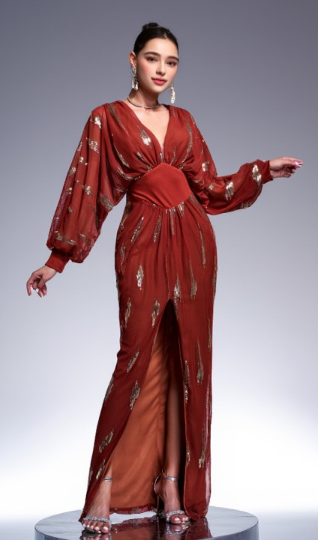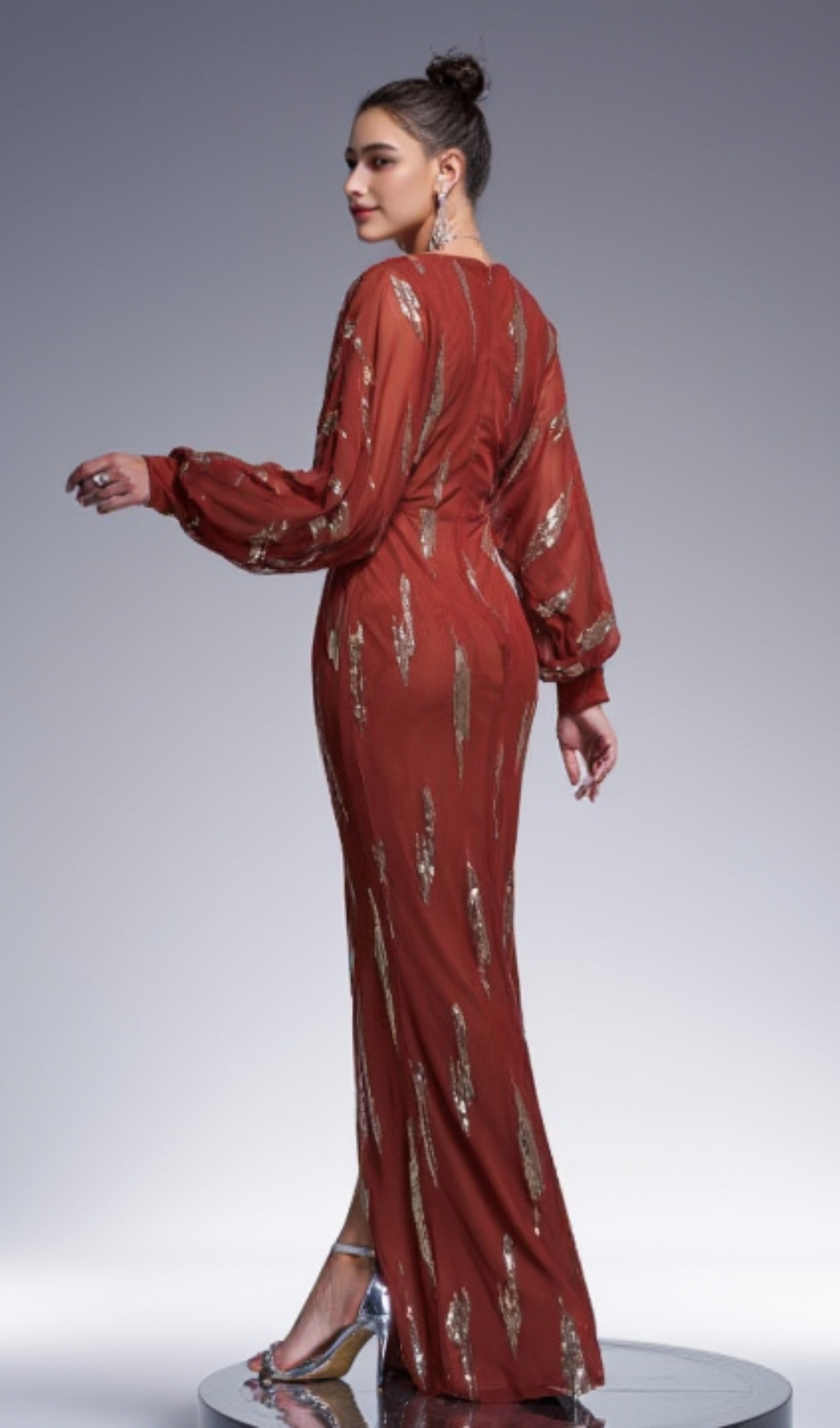 Lantern Sleeve Sequin Prom Dress