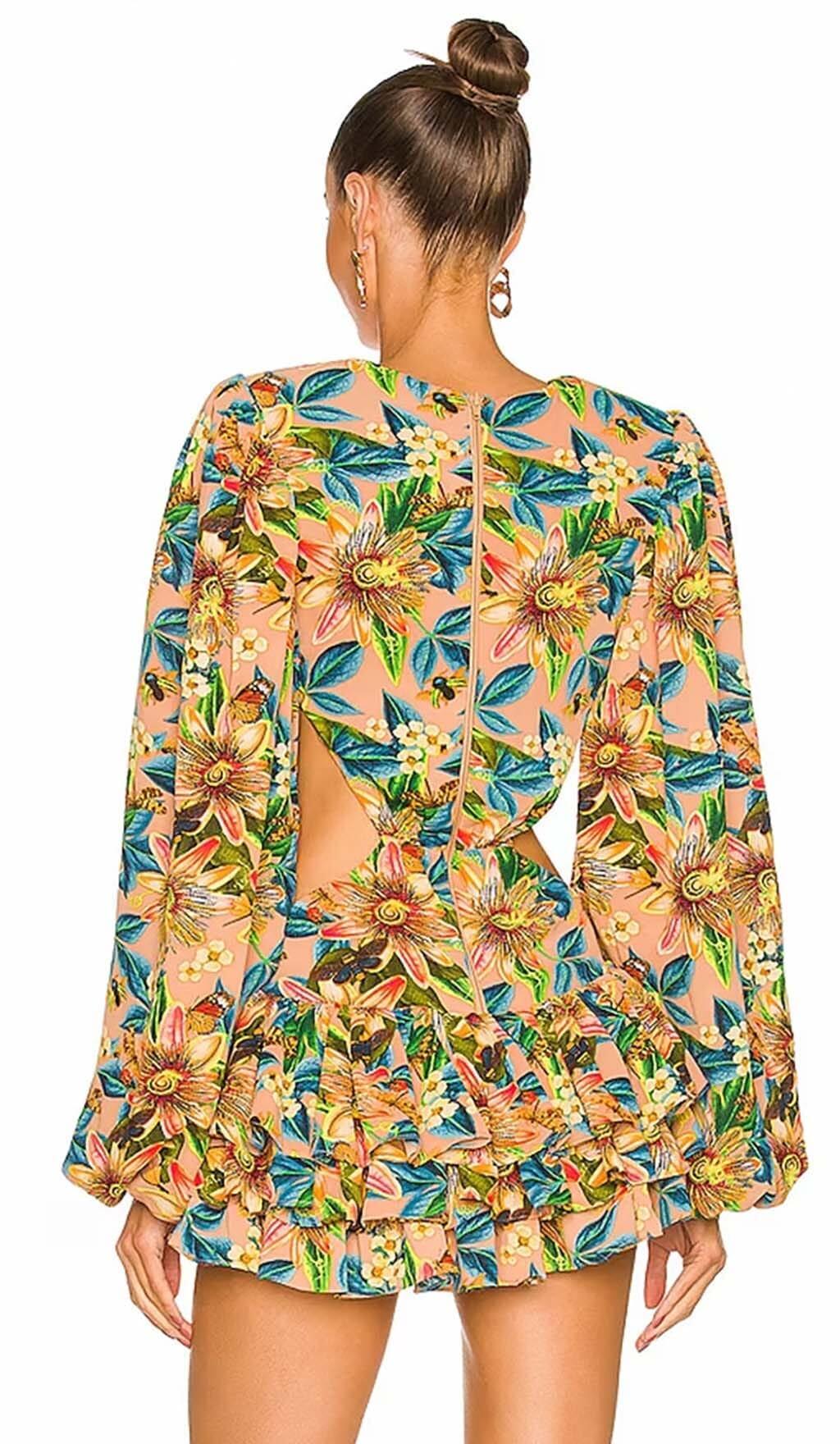 LONG SLEEVE CUTOUT MINI DRESS IN MULTICOLOR