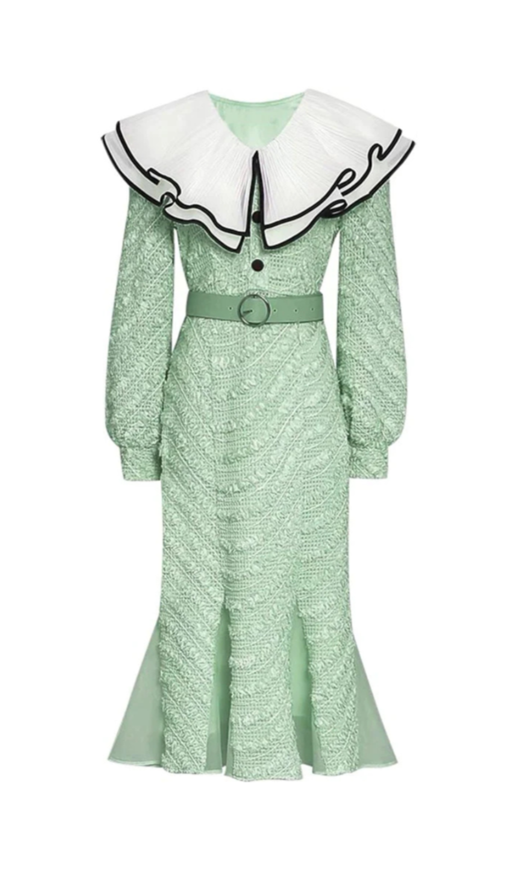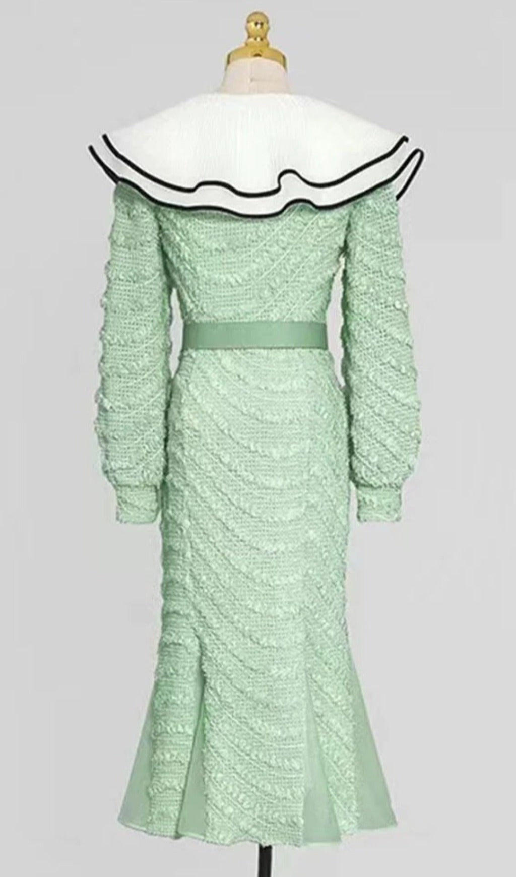 ANTONINA GREEN RUFFLE KNIT DRESS