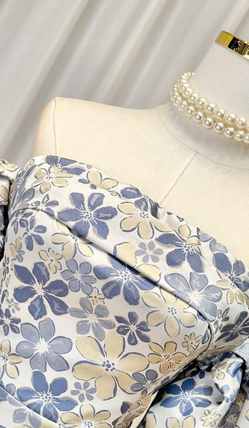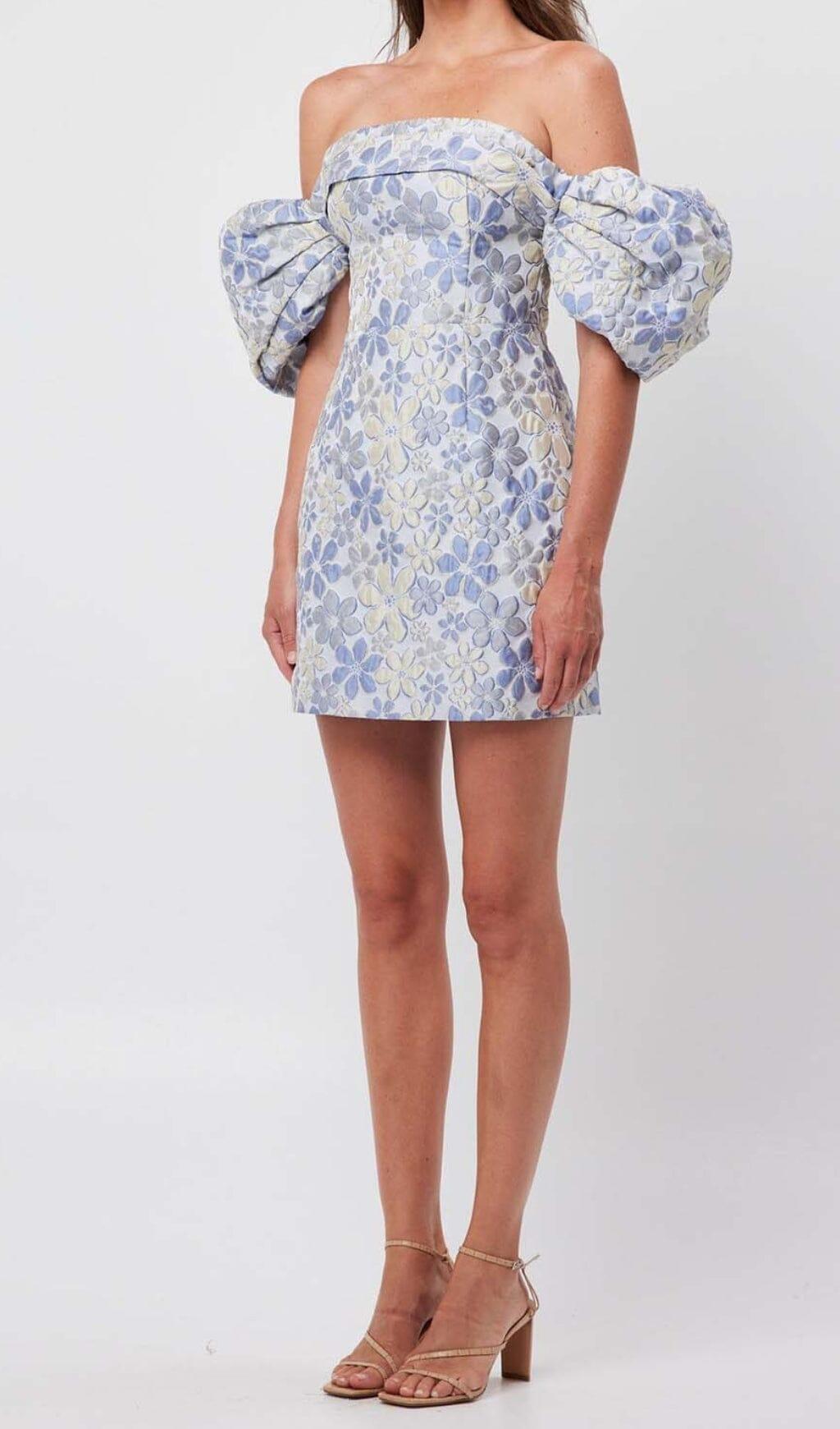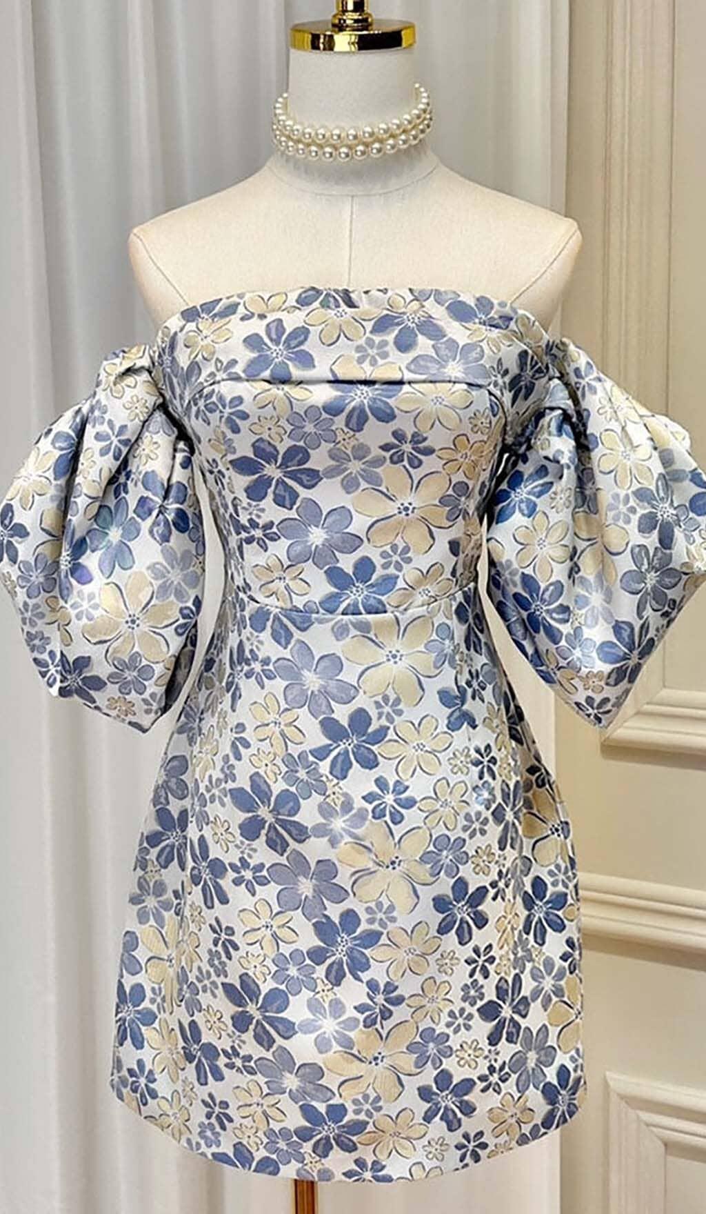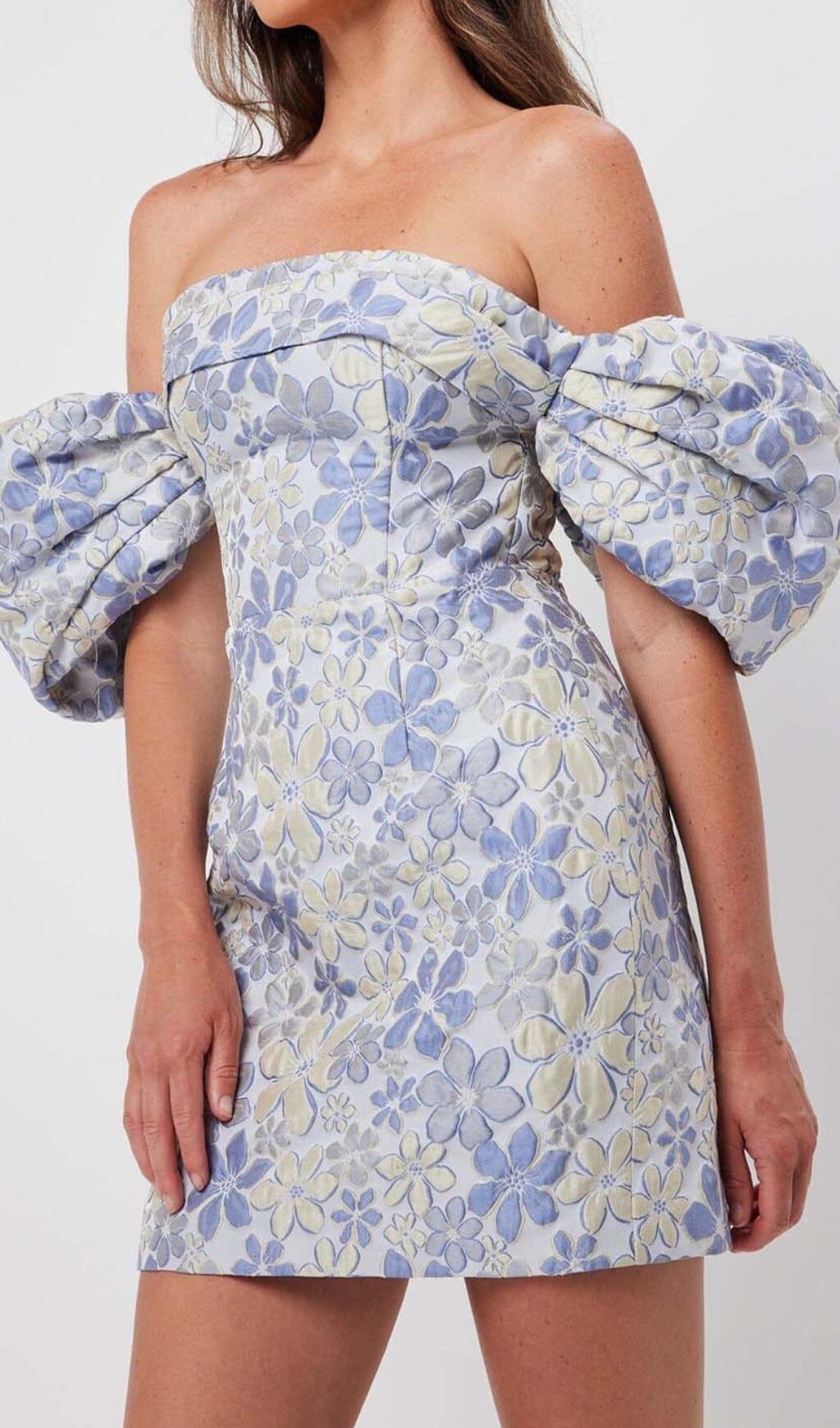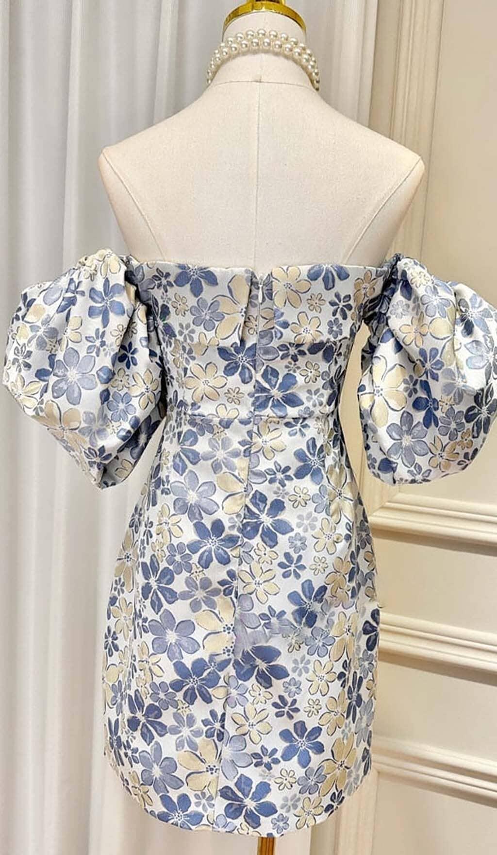 PUFF FLORAL PRINT MINI DRESS IN BLUE