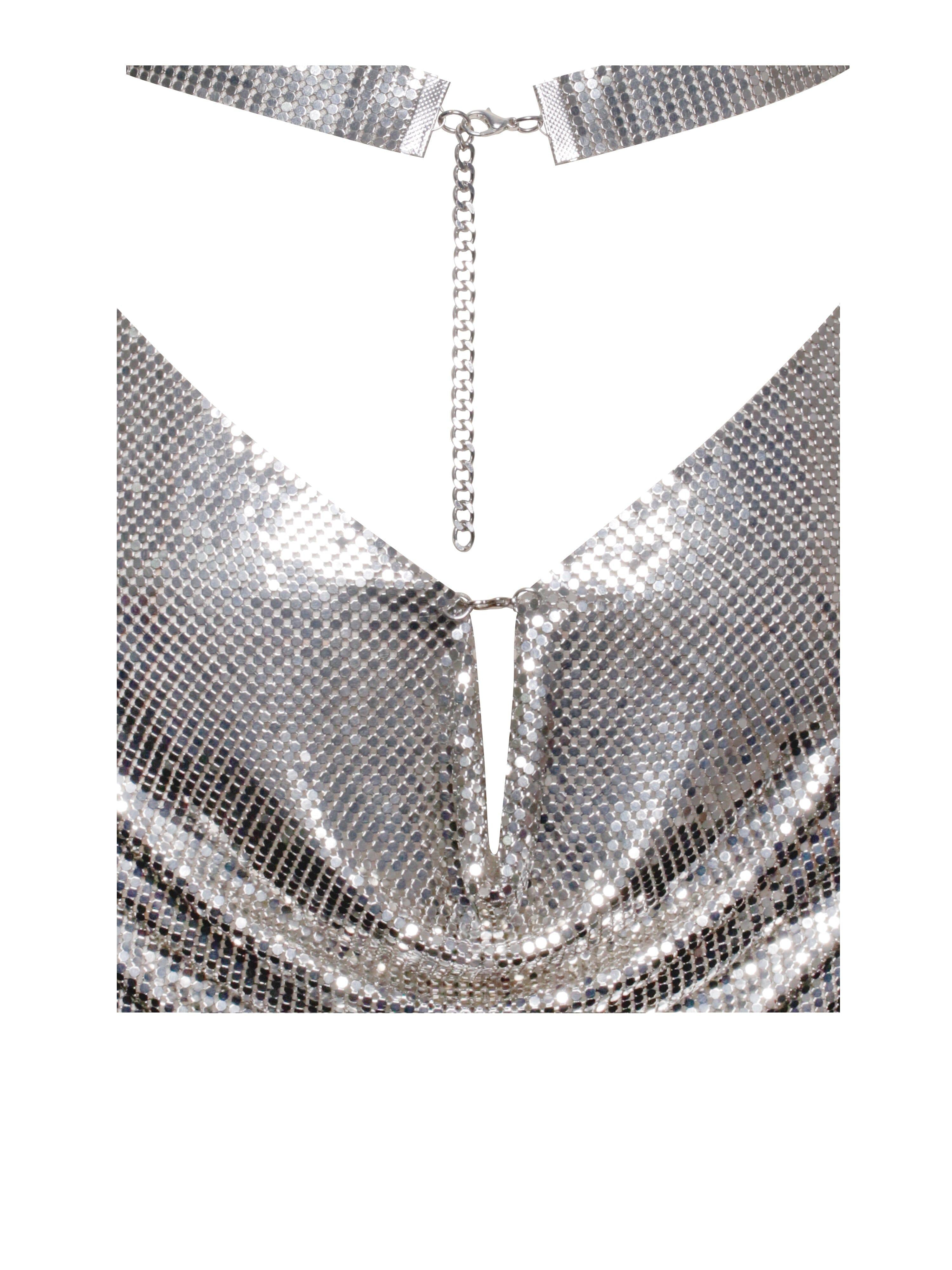 Elevate your style with the Serenity Silver Copper Mesh Dress. Handmade with attention to detail, this dress exudes elegance and sophistication. Its unique copper material adds a touch of glamour, making it perfect for special occasions or a night out on the town.