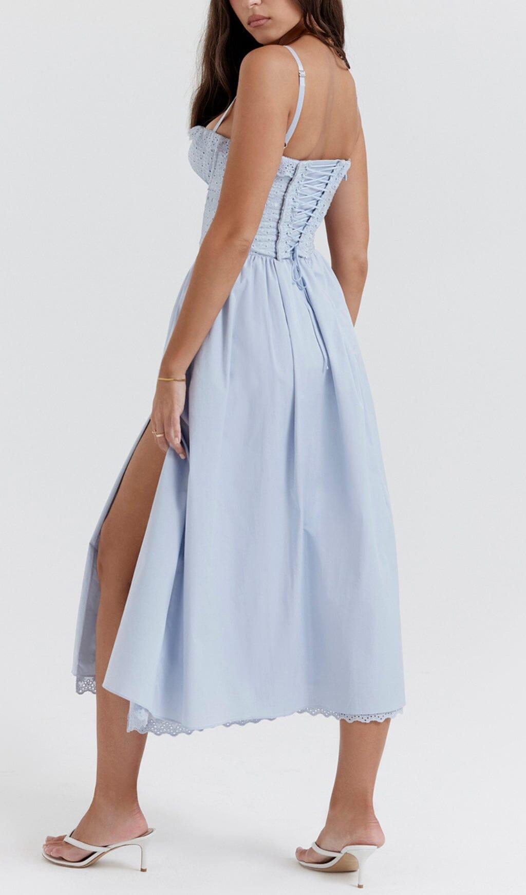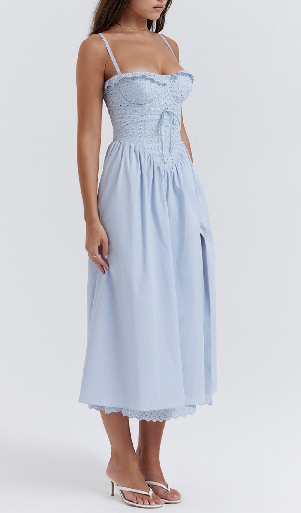 SOFT BLUE BRODERIE ANGLAIS MIDI SUNDRESS