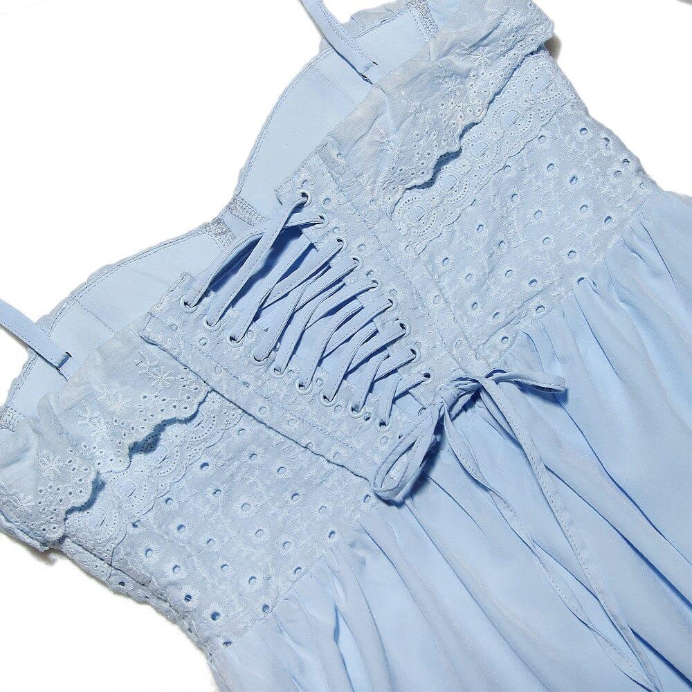 This dress offers little stretch, ensuring a structured and flattering fit. With a dress length of approximately 120cm, it is designed to suit various body types. The materials used include stretch cotton, new dainty embroidery anglais, light silky satin, ribbon threaded lace trim, broderie lace trim, and light rayon.