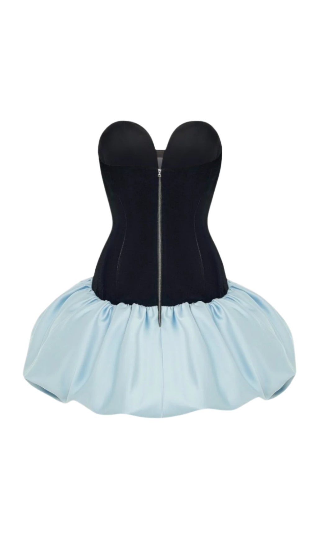 Stanski Strapless Velvet Bow Puffy Satin Mini Dress