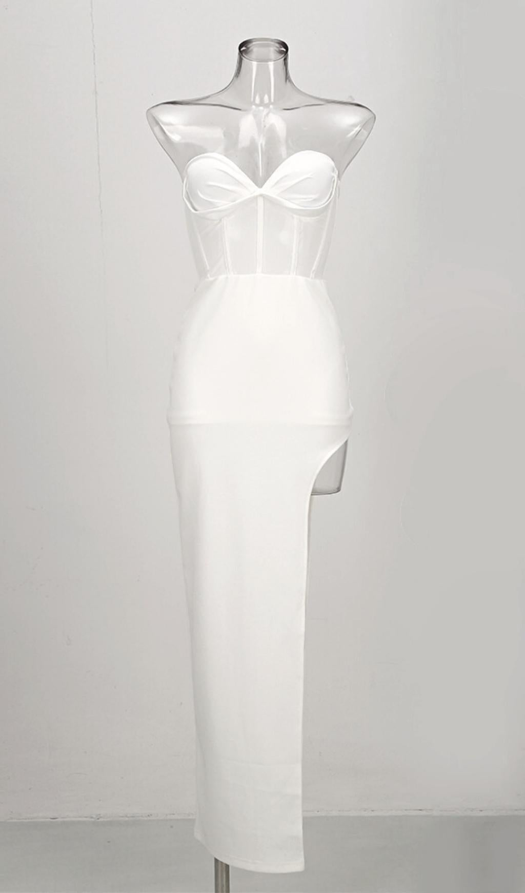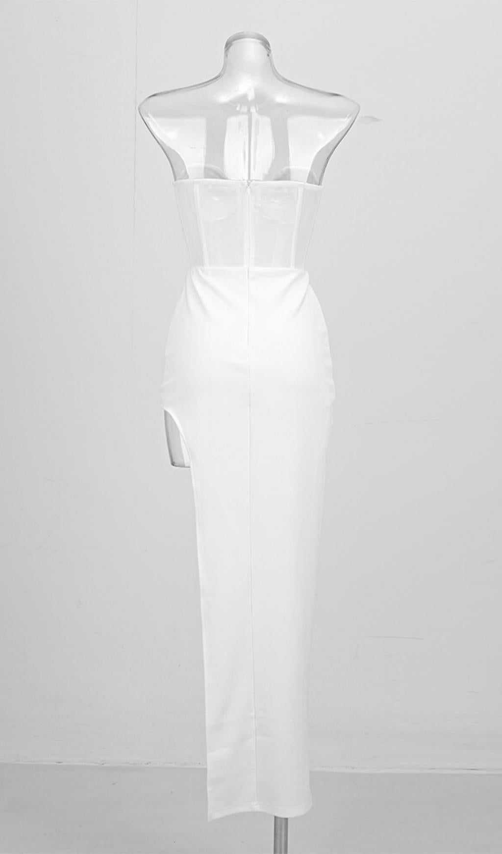 STRAPLESS GAUZE MAXI DRESS IN WHITE