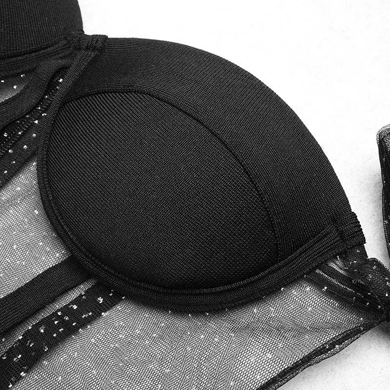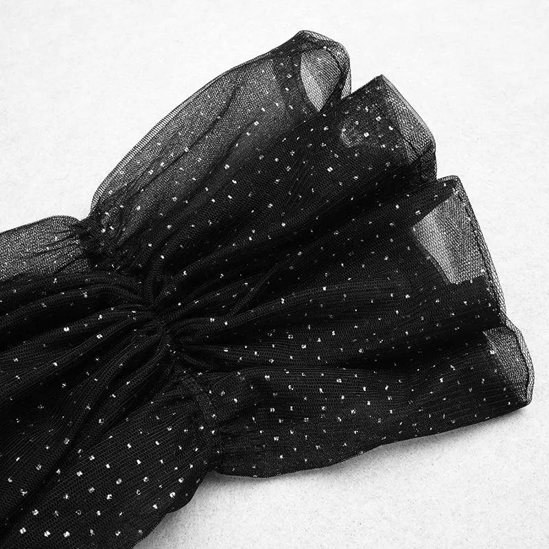 STRAPLESS MESH SHINY LONG SLEEVE MAXI DRESS