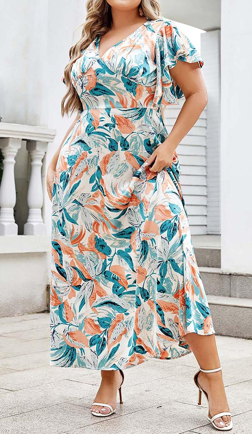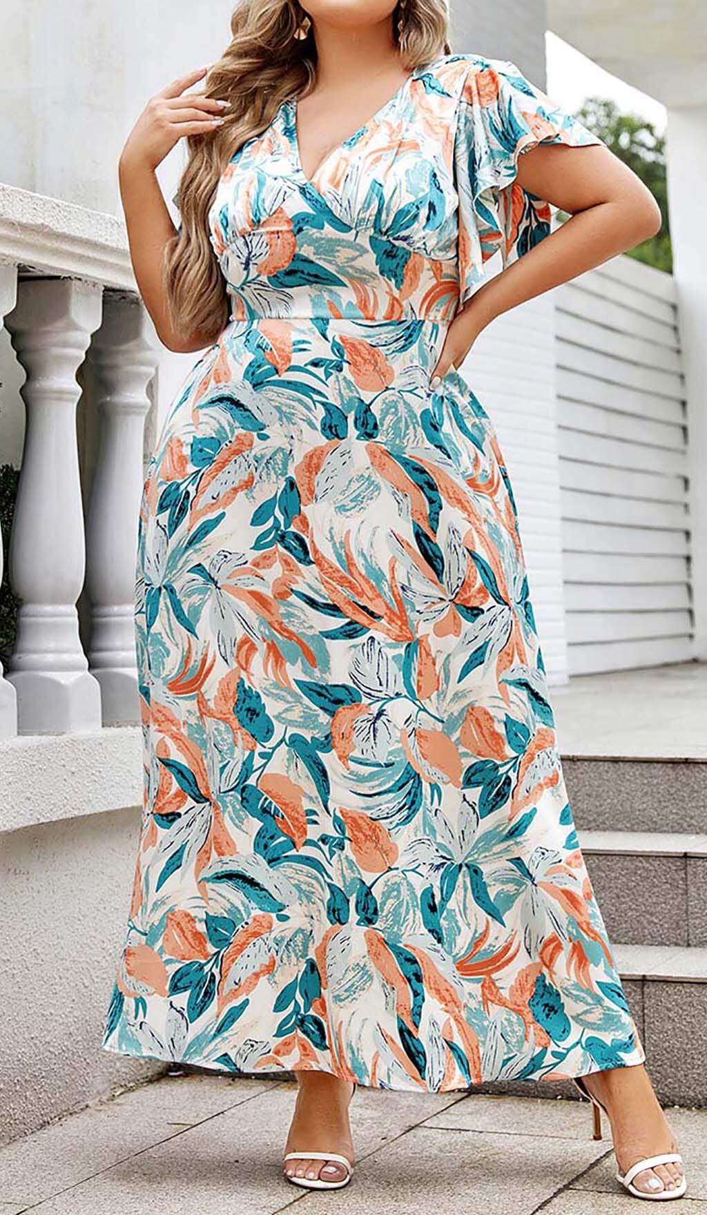 Make a Vibrant Style Statement in This Tropical Print Butterfly Sleeve Midi Dress in a Vibrancy of Colors. Vibrant Hibiscus and Palm Prints Adorn This Breezy Chiffon Dress While the Fluttery Butterfly Sleeves Add Playful Movement. The Midi Length Keeps You Comfortable and Chic for Sunny Vacation Activities and Summer Soirées.