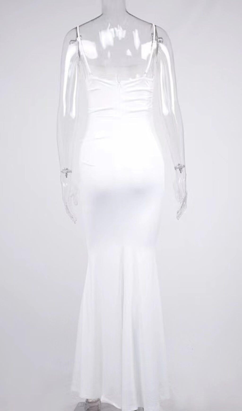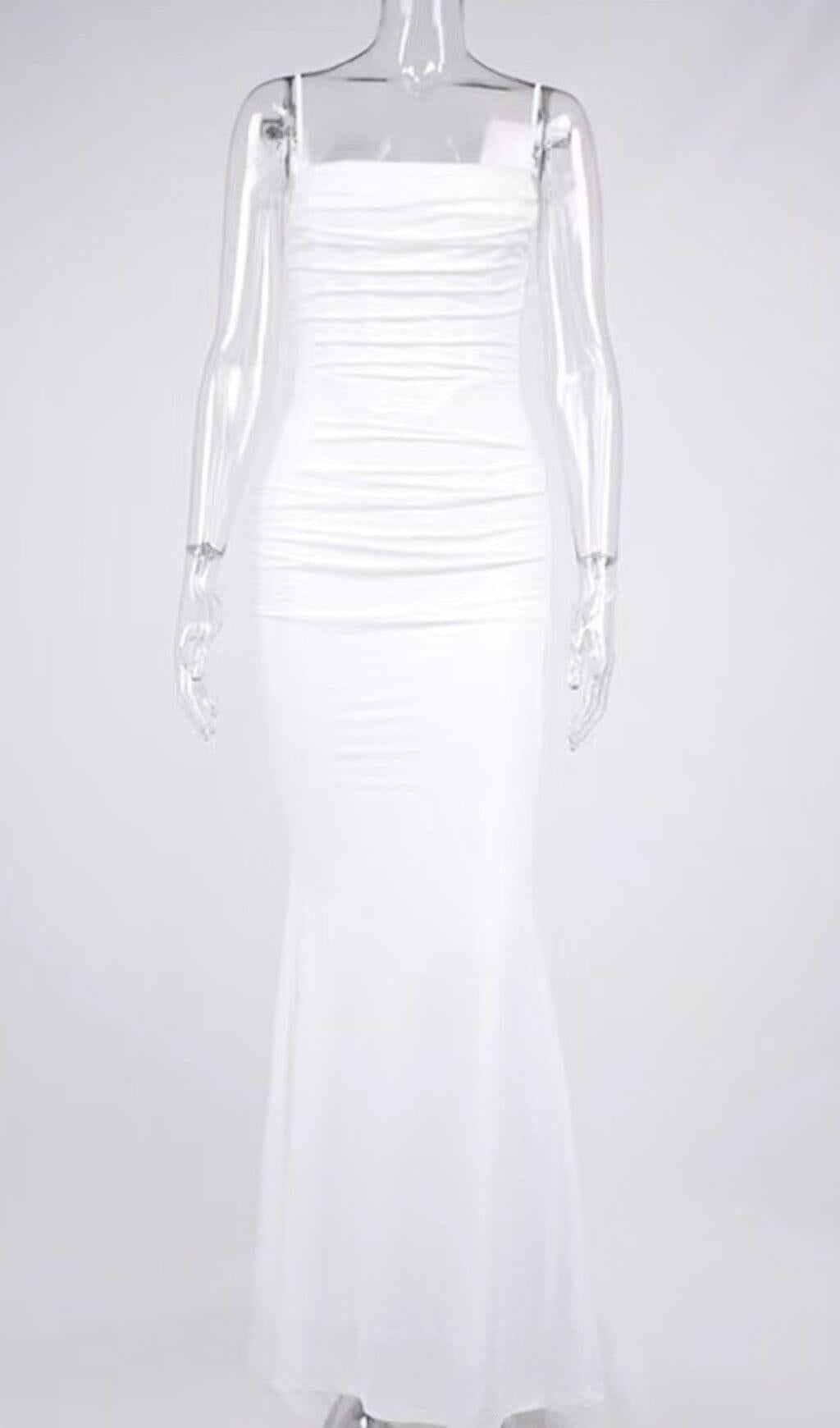 Elevate your style and make a statement with our White Draped Corset Maxi Dress. Order now and be the center of attention at your next special occasion!